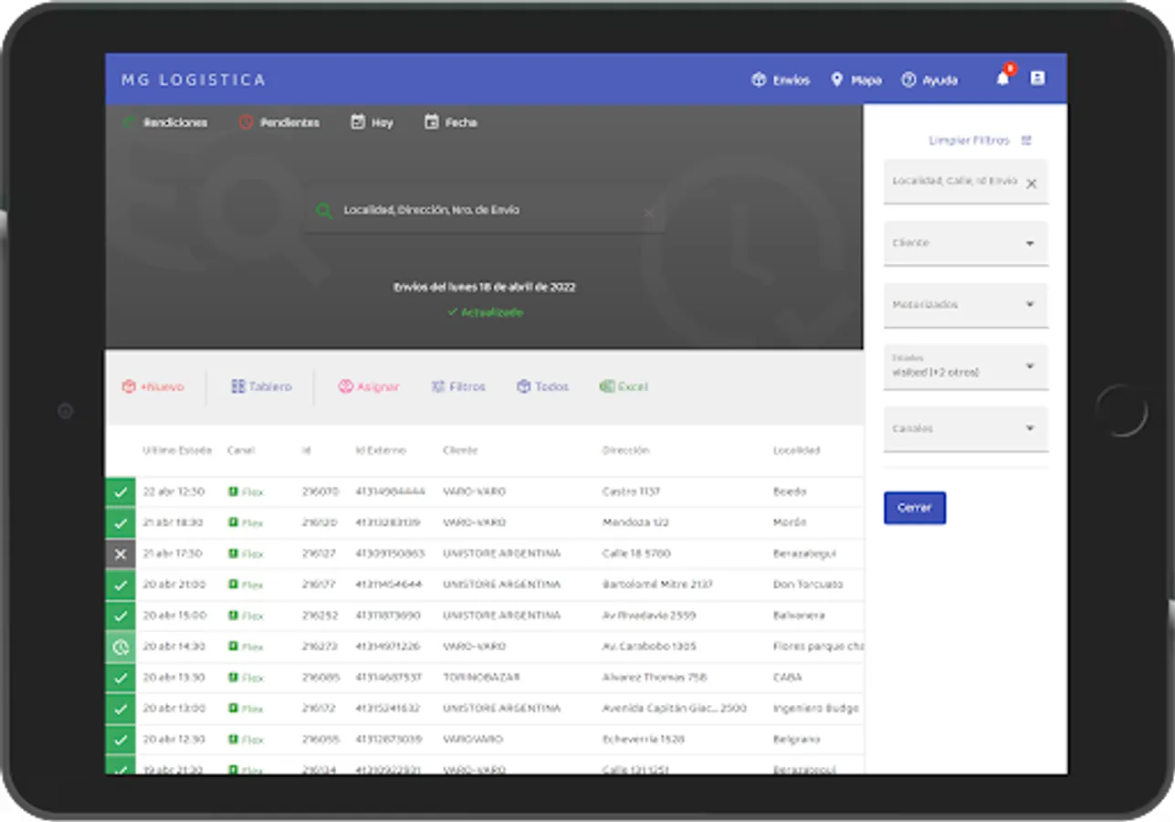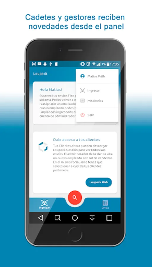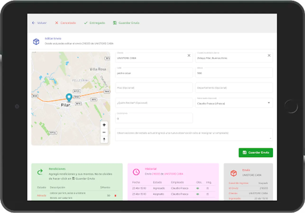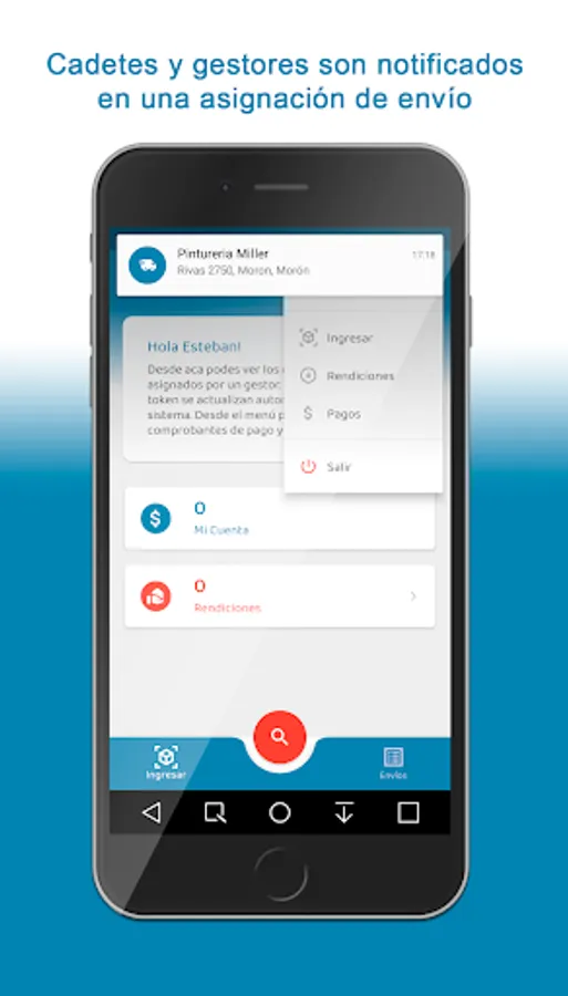 Con la App los gestores, cadetes y clientes pueden escanear etiquetas para ingresar envíos de terceros. Cadetes y gestores pueden gestionarlos, visualizar el recorrido para llegar al destino, cargar imagenes y observaciones por cada estado del envío y los datos de la persona que recibe el paquete.