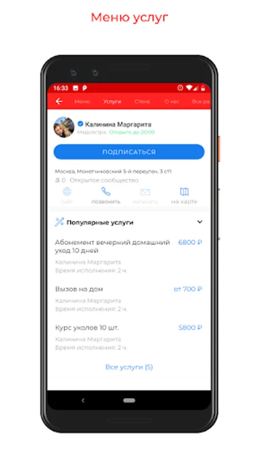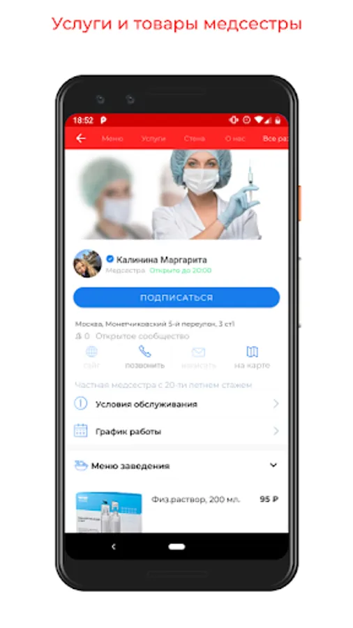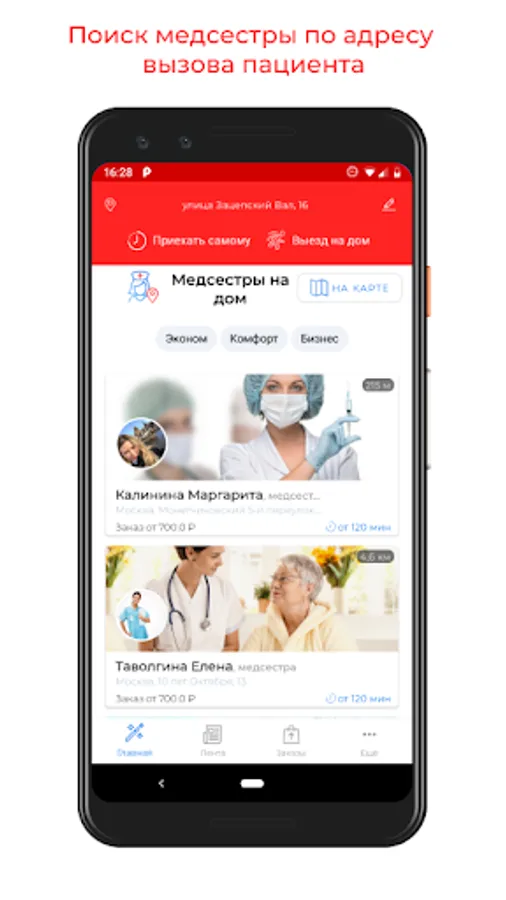 Services in the application: nurse at home, injection at home, dropper at home, home care, call a nurse, carers, car nannies.