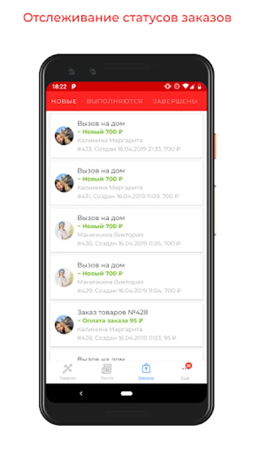+ Ordering medical procedures with payment from the application;