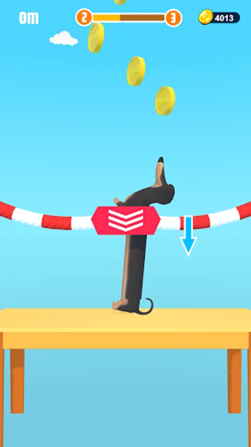 Stretch the dachshunds and eat the gold coins and hamburgers on the way.Finally, the funny dog would retract and squat on the ground.Have great fun to play this game.