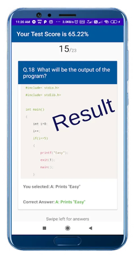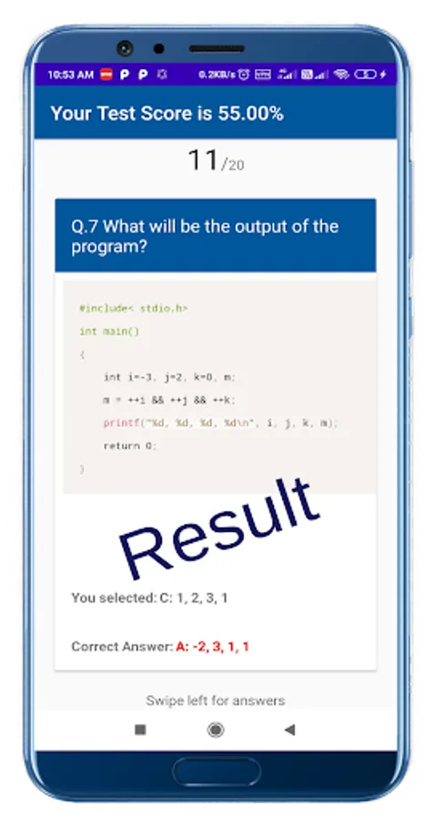 7.Result with your submitted answer ans true answer for verification