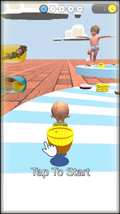 Watch out for the dolls, don't hit the toys, collect the biscuits, inflate the doll and get the highest score.
