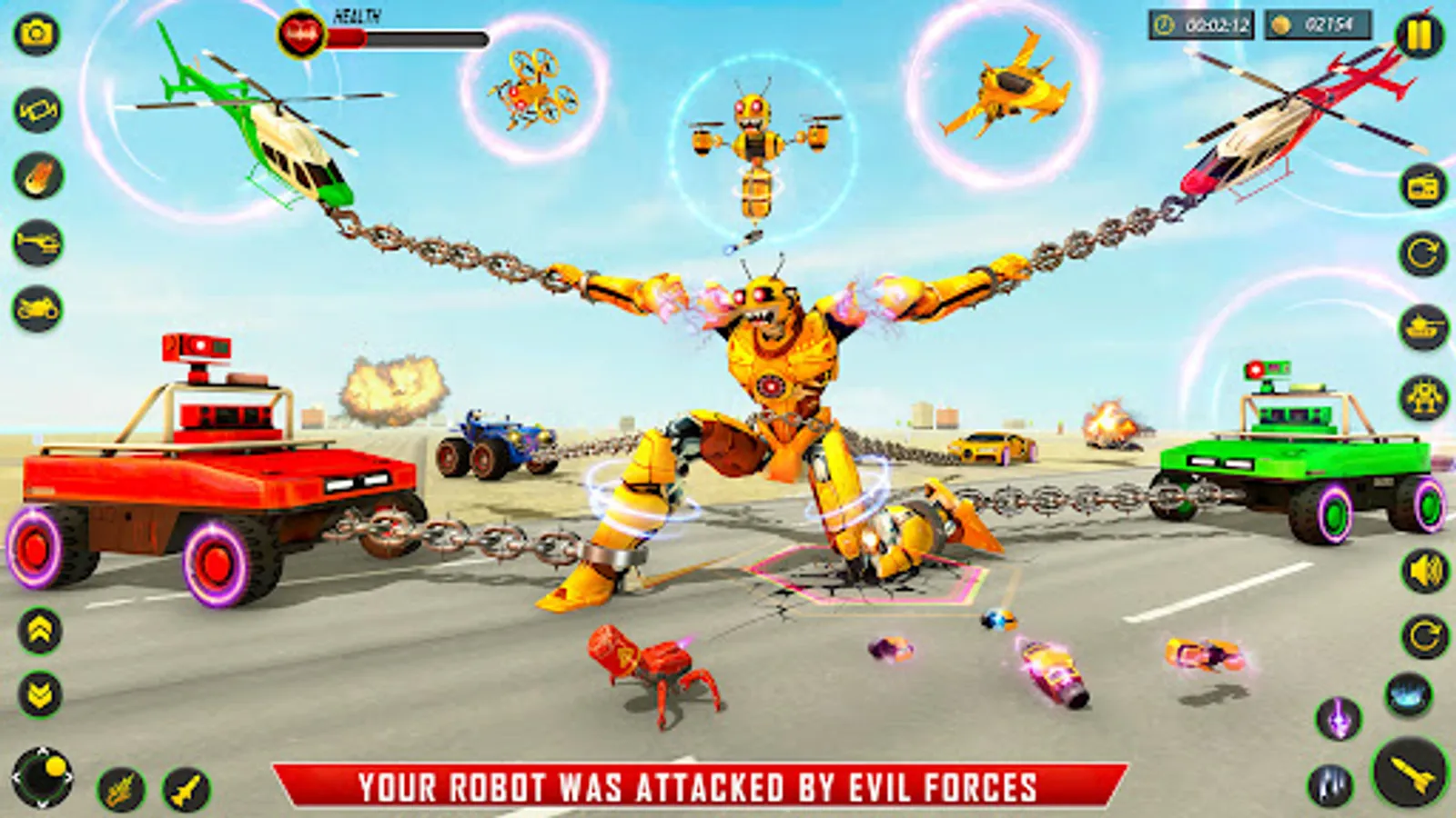 This unique robot car transformation game includes multiple dangerous enemies like agg wala indian truck, pika robot , robot farm, war robot car transform and many others which you have only seen in popular action movies of climate robot games 2021. To overcome these kinds of deadly mech enemies you will get multi robot car transformation in car robot game like giant monster spider machine, indian fire truck, demon beast, mech robot, flying bee robot, car wla robot, flying tiger robot, or other animals like lion chappie robot, dino robot transform car games etc.