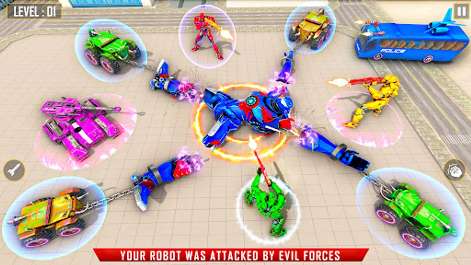 This future robot game has lots of mech robot war skins that increases the joy of playing robot wars in robot car game. You feel like a superhero with many costumes of car robot game. You will also love the various robotic super powers of mech robot game in all your robot transformations like flying bus robot, future girl bot, helicopter robot, mega truck robot or jet robot to fight evil bots from car robot game besides robot wala game or gadi wala game. So enjoy this mix of transforming robot game or/and robot transform game and unlock all skins. We will try to add more police car robot game skins for you in coming updates. If you enjoy playing multiplayer indian robat games and offline robot game alongside robot wali game, you will love multi robot game which gives a flavor of driving games, superhero games, robot shooting games and animal games, all in one mega robot game.