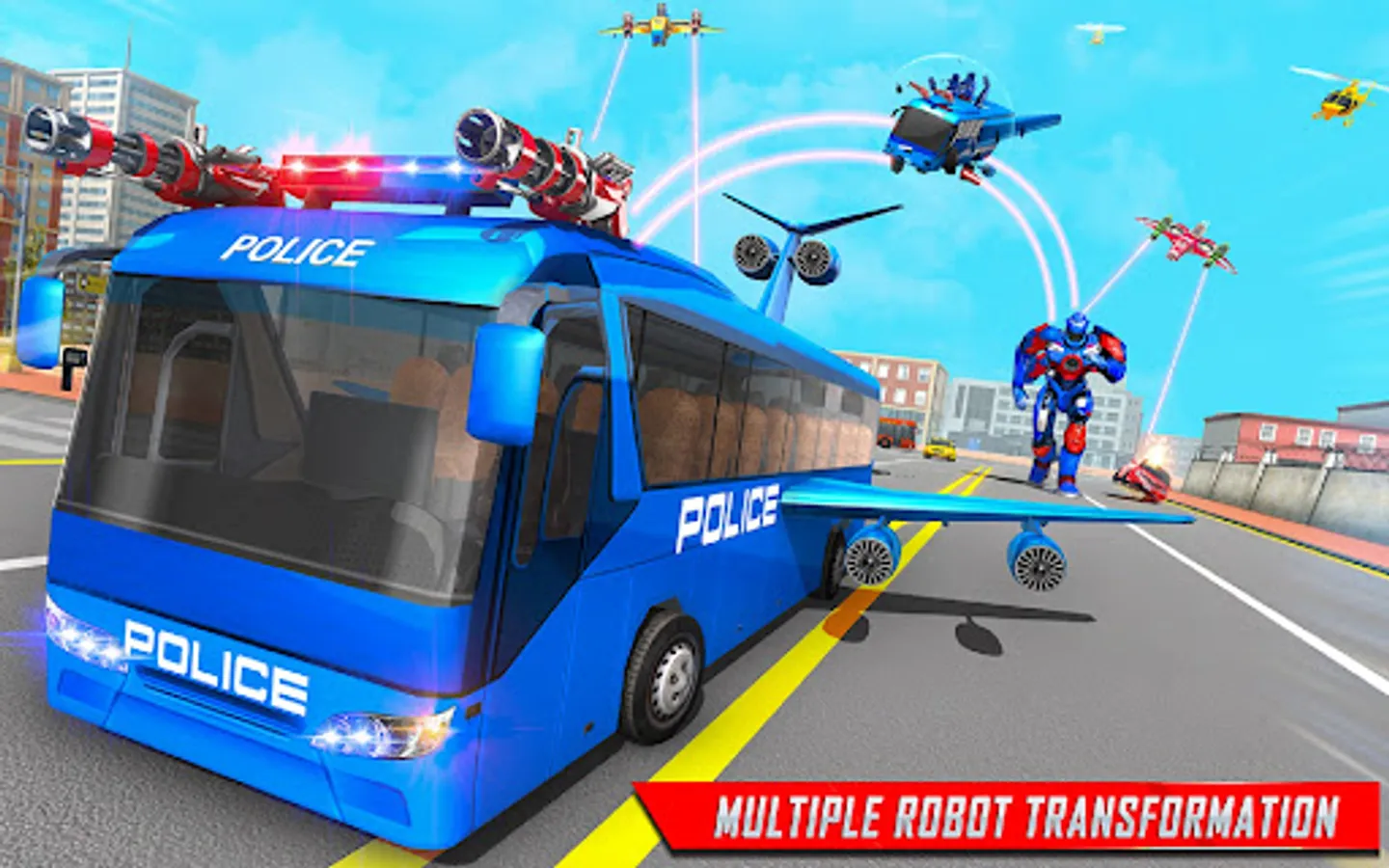 Flying Police Bus Robot Game: Robot Car Game