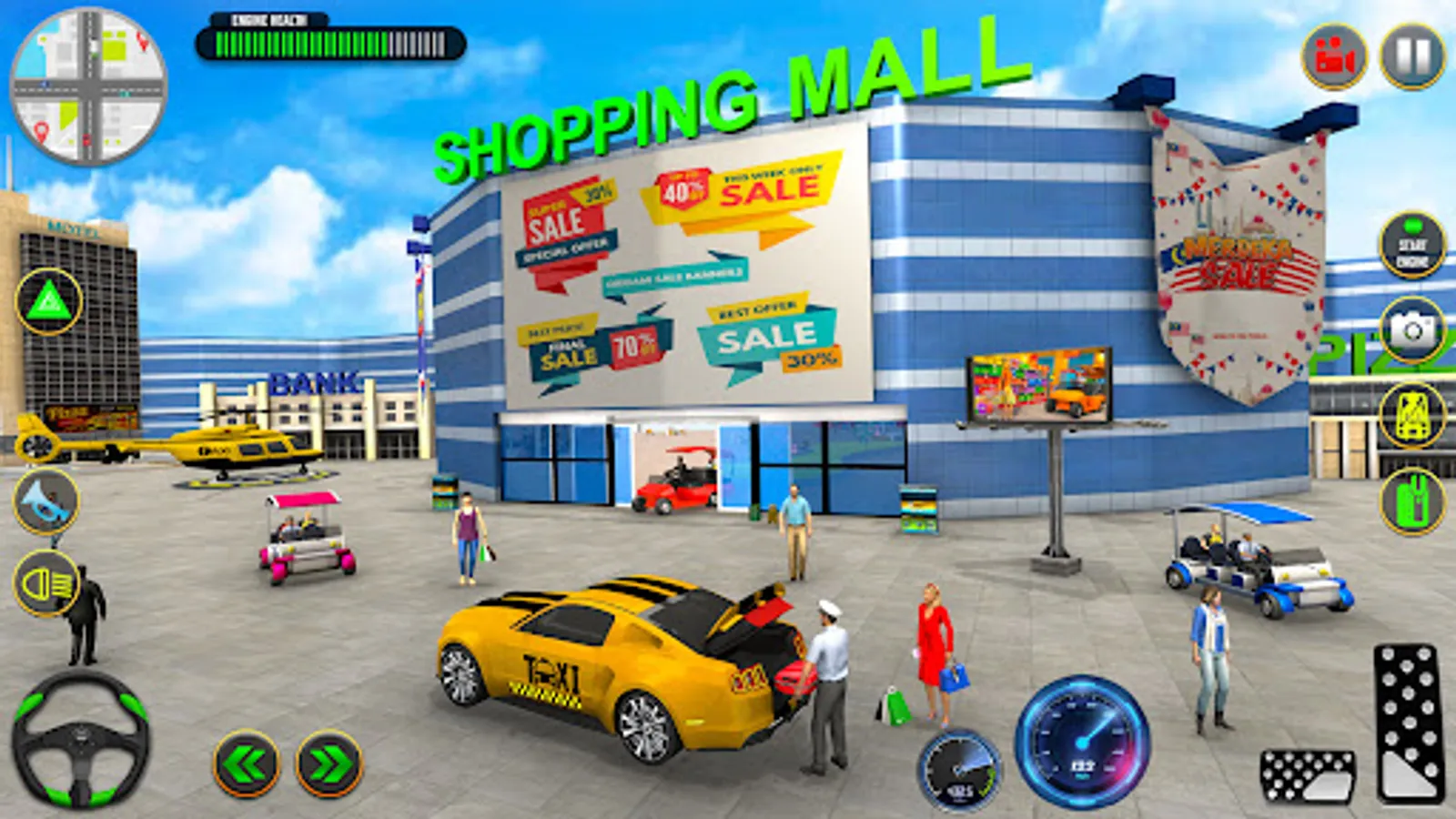 Drive carefully and vehicle parking quickly but safely and without accidents and collisions to become a crazy taxi driver games. Enjoy taxi driving simulator: taxi game sim with stunning graphics and beautiful shopping mall environments in shopping mall taxi game. We’ve added features you won’t find in any other city car driving school games and indian taxi simulation games, there are realistic density of cars and people on the sidewalk across the road and in shopping mall and there are hundreds of destructible objects in vehicle parking game. By playing this taxi driver game: taxi game sim you can feel like an actual taxi driver with realistic controls and sounds!