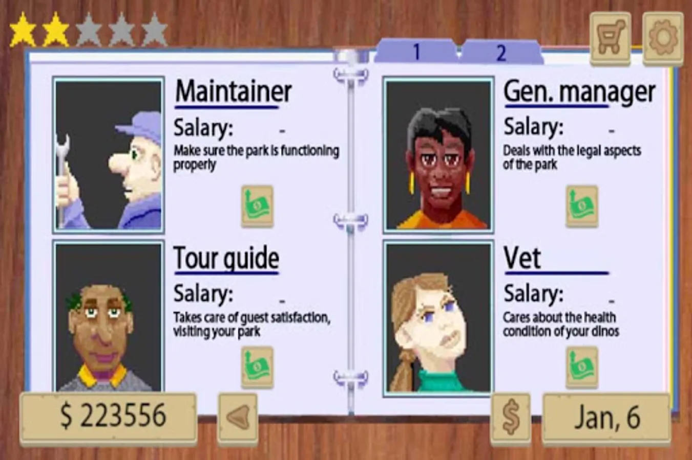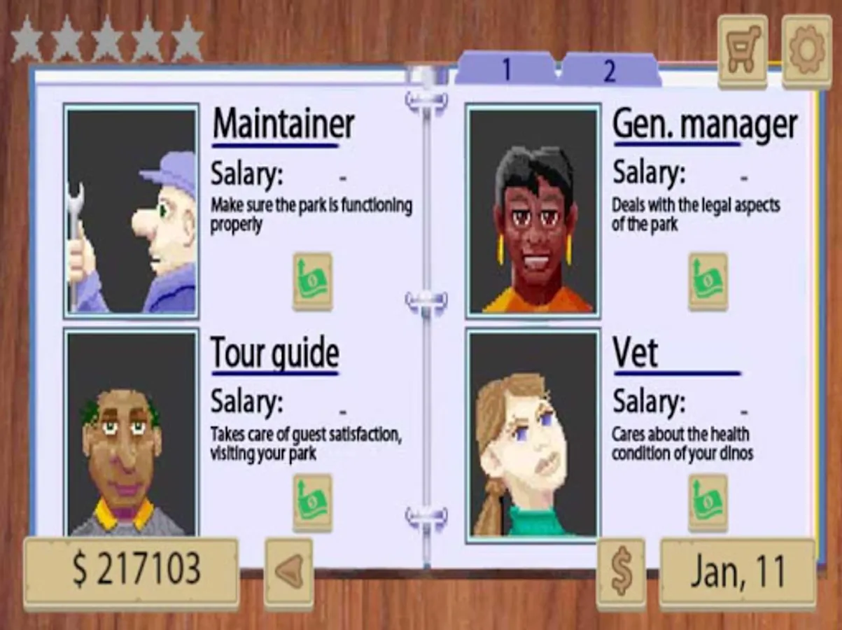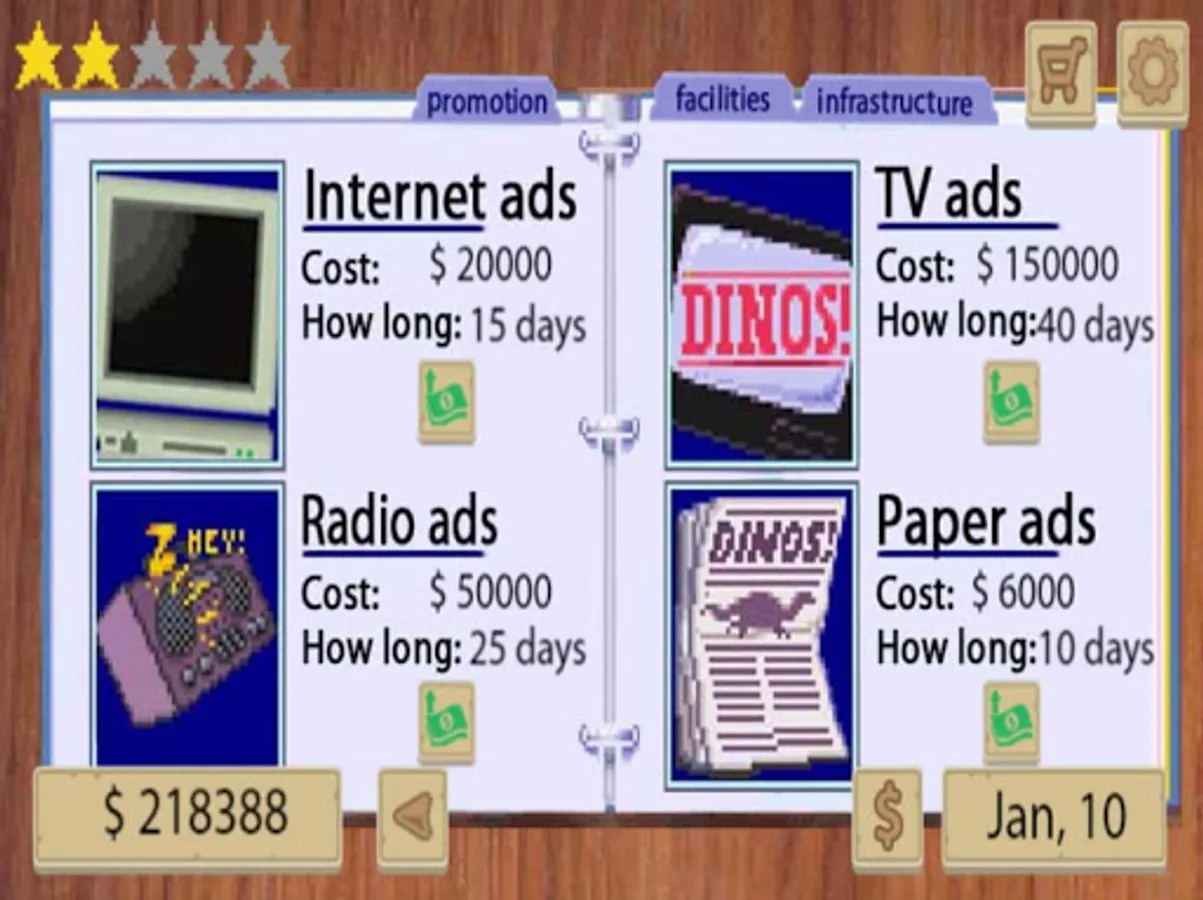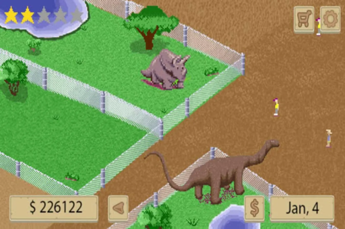 Manage your dinosaurs zoo and becoome the greatest entertainment zoo owner, dino zoo tycoon. Take care of your dinosaurs, develop your zoo inflastructure, riseup your zoo popularity, manage your emploers, manage your zoo finance depends on year season.