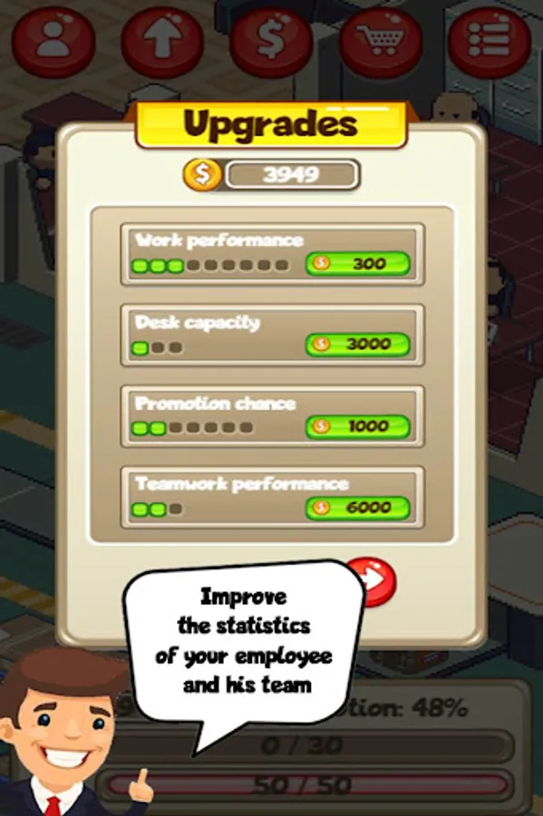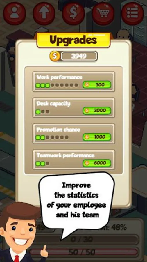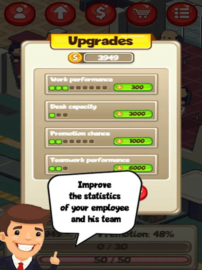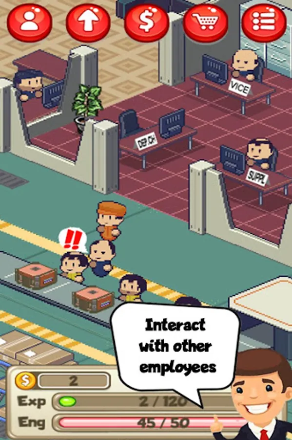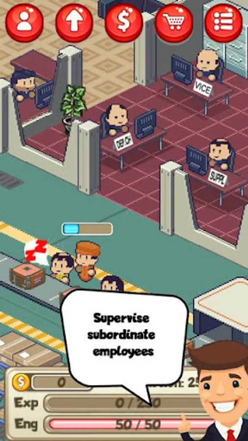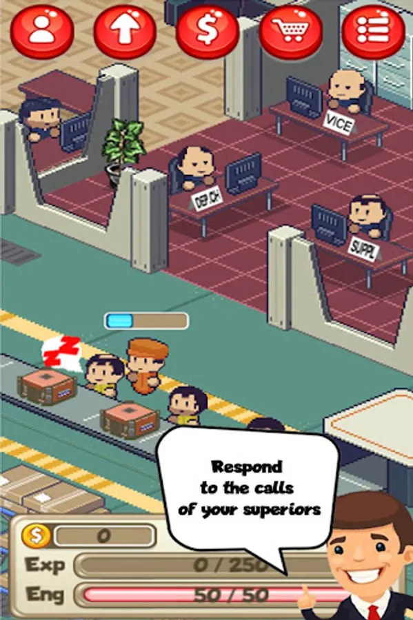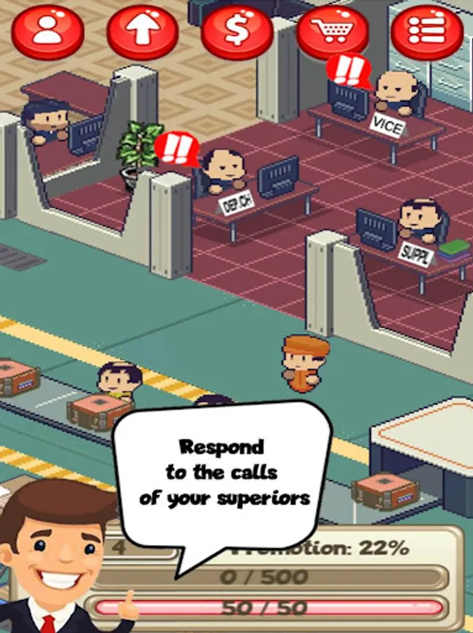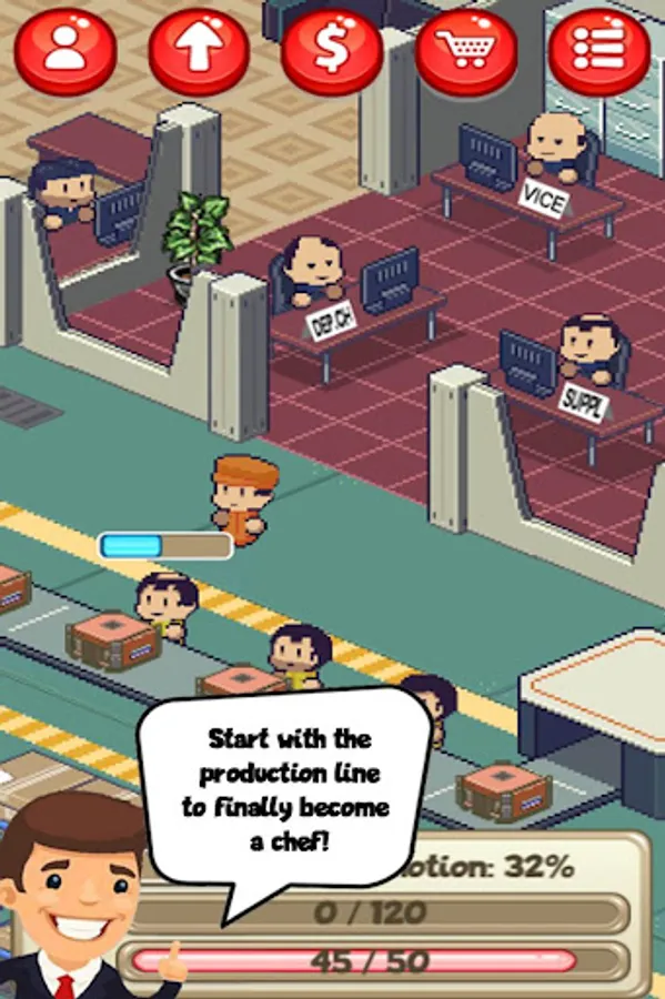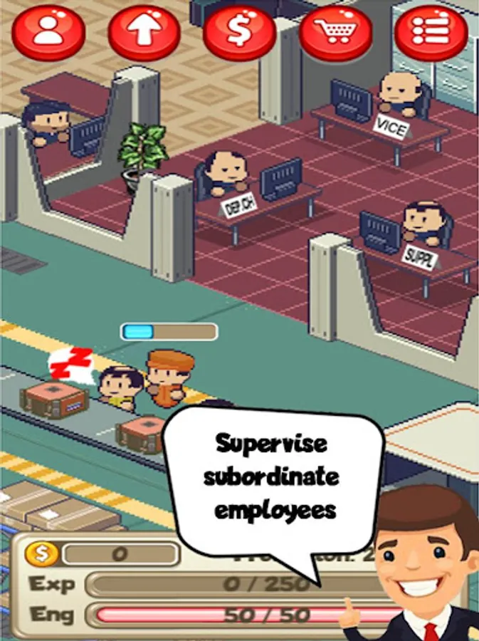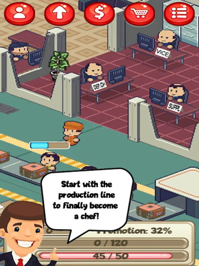 Become an employee of a factory trying to advance on the career ladder by your hard work.