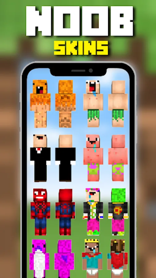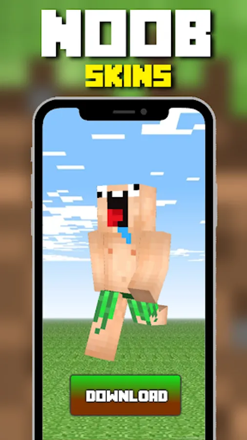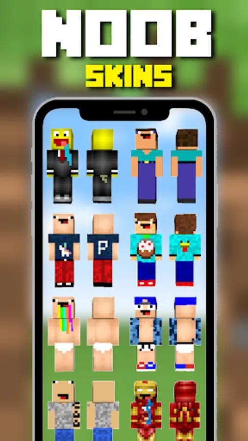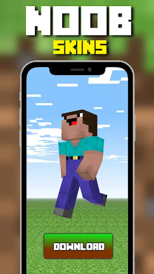 Noob Skins for Minecraft PE is the most popular collection of skins available for free. Install the application noob skins and choose noob skin that is right for you in order to diversify your gameplay and make it better.