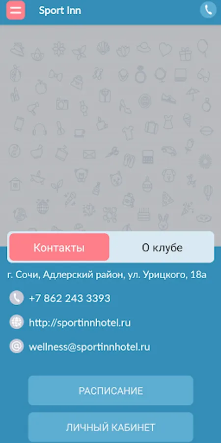 The application shows the schedules of clubs in the SportIn system with the possibility of registering and recording for a specific lesson.