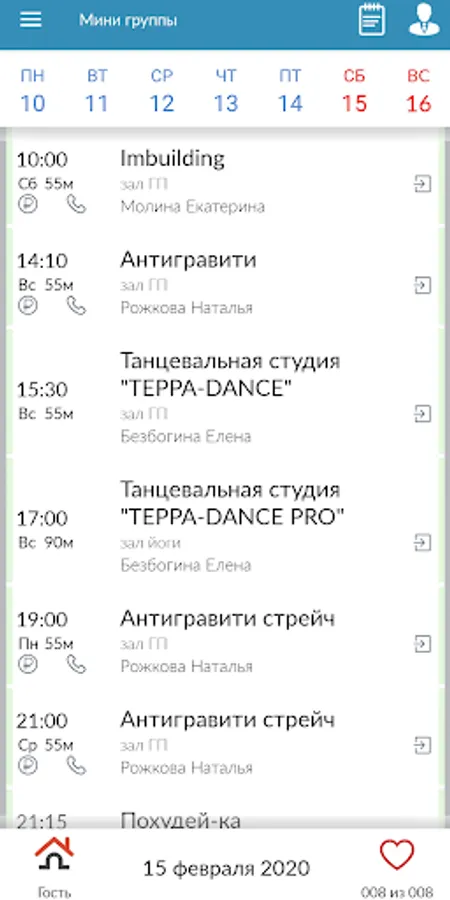- choice by the name of the programs, by the name (us) of the instructors, by the name (us) of the club's schedule;