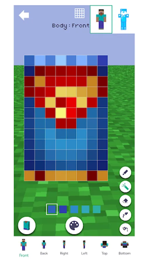 - Lot's of skin advance editing tools available like color palette, color bucket, Eye dropper tools, erase and pencil/edit tool for color pixel by pixel
