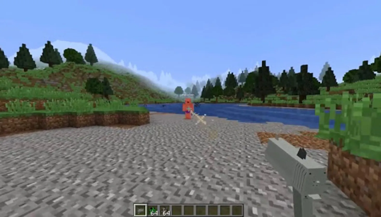 Additional Weapon will add to your game on your phone a lot of new items from the well-known game “Battle Royale”, if you are delighted with it, this mod will definitely impress you with an updated weapon arsenal, cool cars, new decorations and mobs. Now in Additional Weapon you will no longer be bothered by the lack of weapons. The mod will expand your arsenal to such an extent that it will be possible even to attack every enemy with a new gun or rifle. A complete list of what you get: a battle bus, a new basket - you can ride on it, a stinker, a launcher, new pickaxes, a boogie bomb, a bolt-mounted sniper rifle (bow), a pump gun, a grenade, a pistol, new potions (protective elixir and others), Honey Kit, V-Bucks, new skins, light machine gun, Lut Lama, sniper rifle scope, new armor, submachine gun, shields, hunting rifle, all-terrain karting, several new blocks, new locations , airframe, assault rifle, compact SMG, minigun, new start screen , completely updated interface for MCPE, new music, added a chest with loot, new boxes with ammunition.