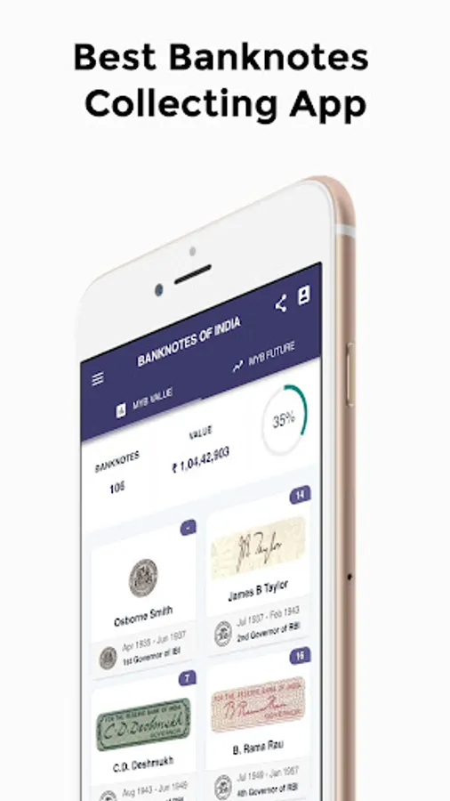 Banknotes and paper currency collectors can now organize their entire paper currency of India, British banknotes of India & paper money of India collection in this free, easy-to-use banknotes collection Notaphily app. Banknotes of India Notaphily app offers an extensive catalogue of paper currency of India, British banknotes of India & paper money of India to choose from, allowing you to quickly begin adding your Banknotes to the Banknotes of India app.
