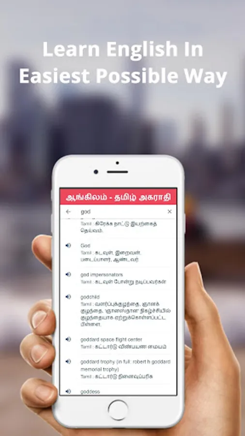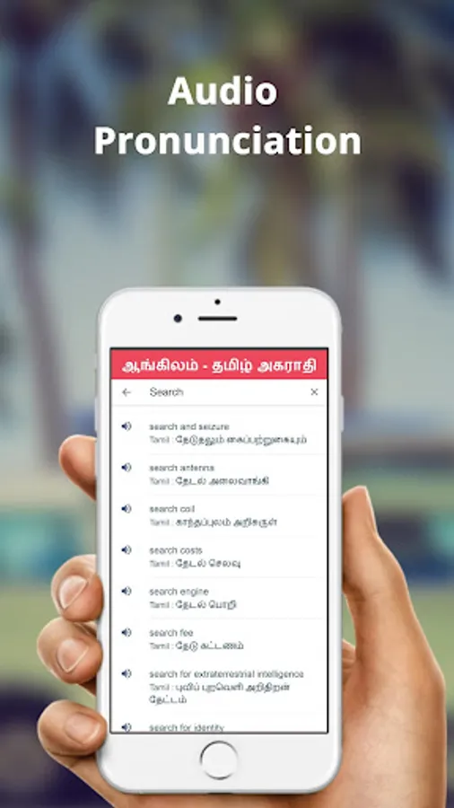 Tamil English Dictionary has 4,60,000+ of English and Tamil words. You can find words and track them for learning. Tamil English Dictionary app has audio pronunciation tool, which helps you spell complex words. Tamil English Dictionary is the best mobile application aide in reading daily newspaper in English.