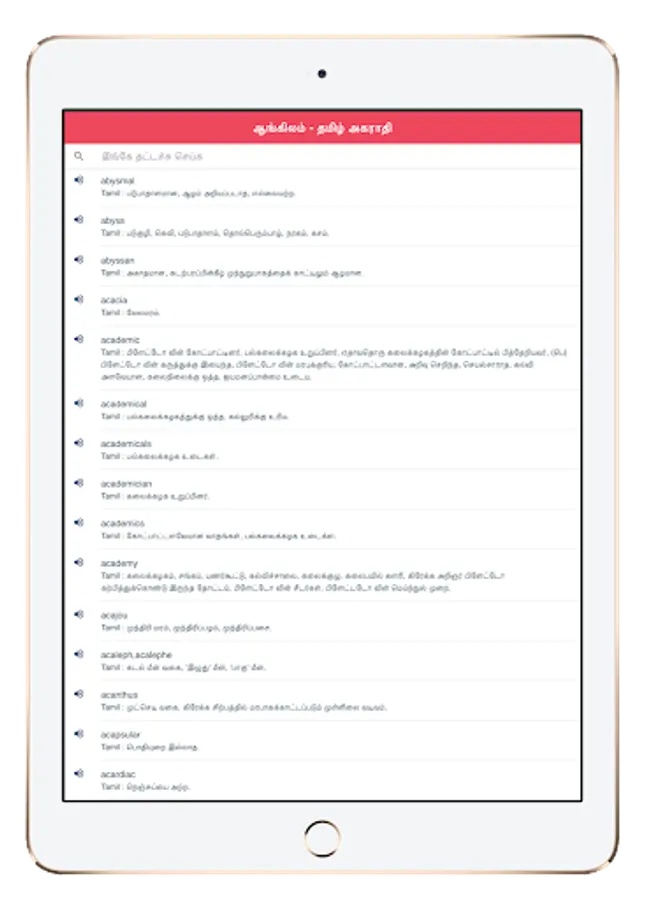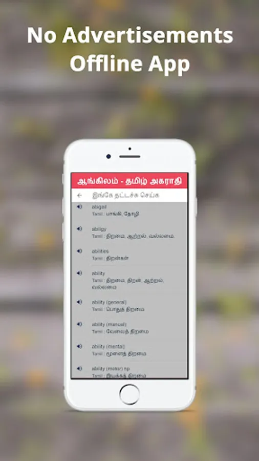 All Tamil Dictionary is a quick, offline reference/guide to learn English words with Tamil meanings available for almost all words. English to Tamil Dictionary app is a free offline dictionary designed to help Tamil speakers learn and improve their English language skills.