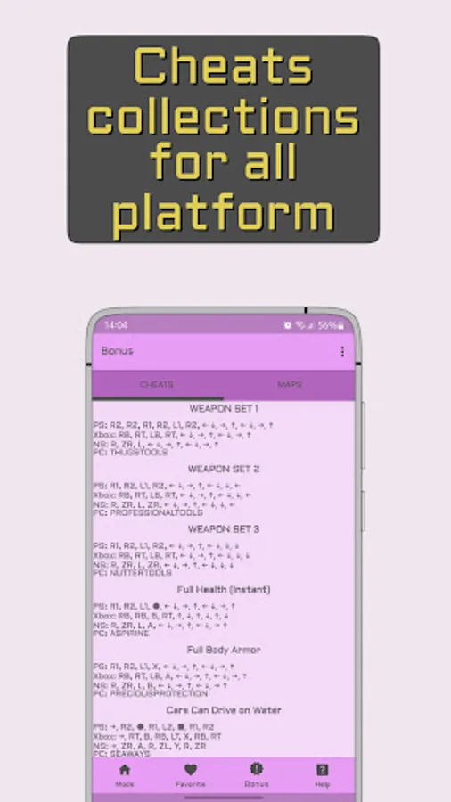 The bonus also includes cheat codes for all game platforms and maps with markers for all places in the game.