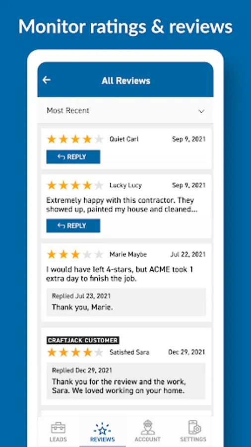 Grow your business with real-time home improvement leads, track your work, engage with more home remodeling jobs, and request reviews through the app instantly when you complete work. CraftJack is available nationwide to help you easily connect with homeowners and the quality leads you want to be connected with.