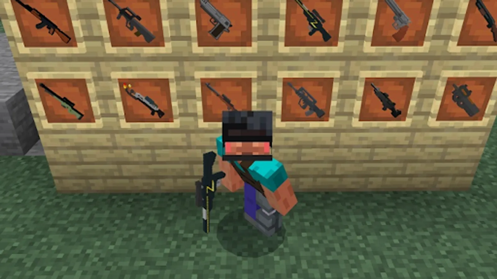 Our application “Guns and Weapons for Minecraft” will help you find the best guns for your comfortable game. You will get additional features with a weapon mod for minecraft. Weapons addons includes all types of firearms for Minecraft: pistols, shotguns, rifles and other guns. But in Pocket Edition you can show the highest degree of your skill in close combat not only with guns. Weapons for minecraft created to change tactics to attack. If we talk about weapons of wide destruction, then this is a mod flamethrower that turns everything into fire. With one click, the addon adds more than 90 types of modern weapons to your arsenal without which it is difficult to defend in a real war mcpe Bedrock. The addon can increase the chances of confrontation and survival in battle with the help of a vest, a night vision device, a gas mask, a stun grenade, a neutralization kit and other crafting mods. Oddly enough, in the classic version of MCPE Bedrock it is impossible to create weapons, you have to do with just a pick and a shovel. Weapons mod for minecraft - of course, this is not a panacea for the enemy, but only a beneficial addition to your abilities, strength and ingenuity. Each weapon for minecraft mods is individually unique in its characteristics. Now you are a threat to your enemies. For example, the addon submachine gun is a super fast gun that is simply indispensable in close range combat.