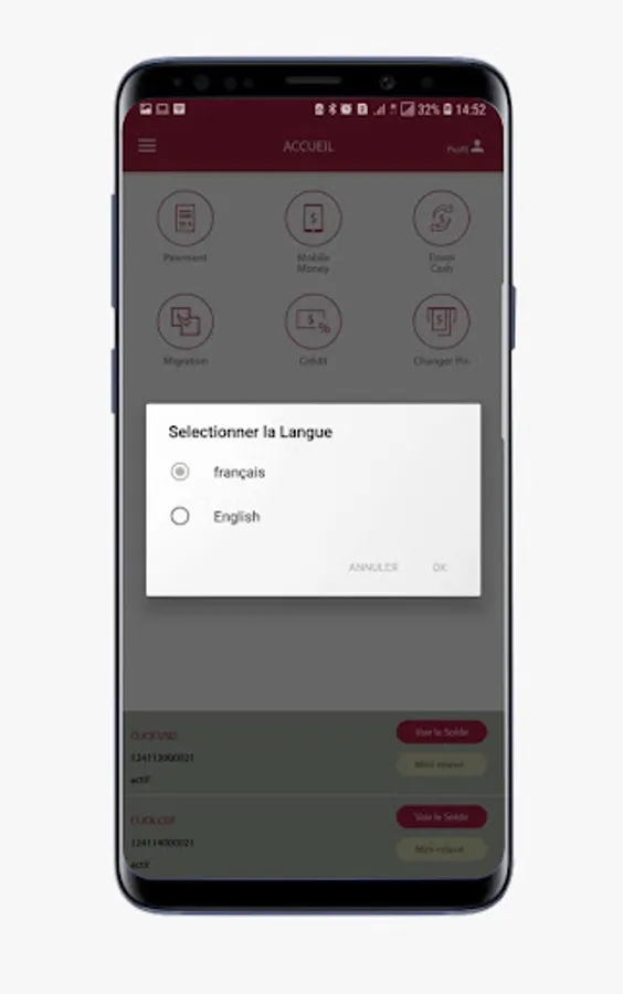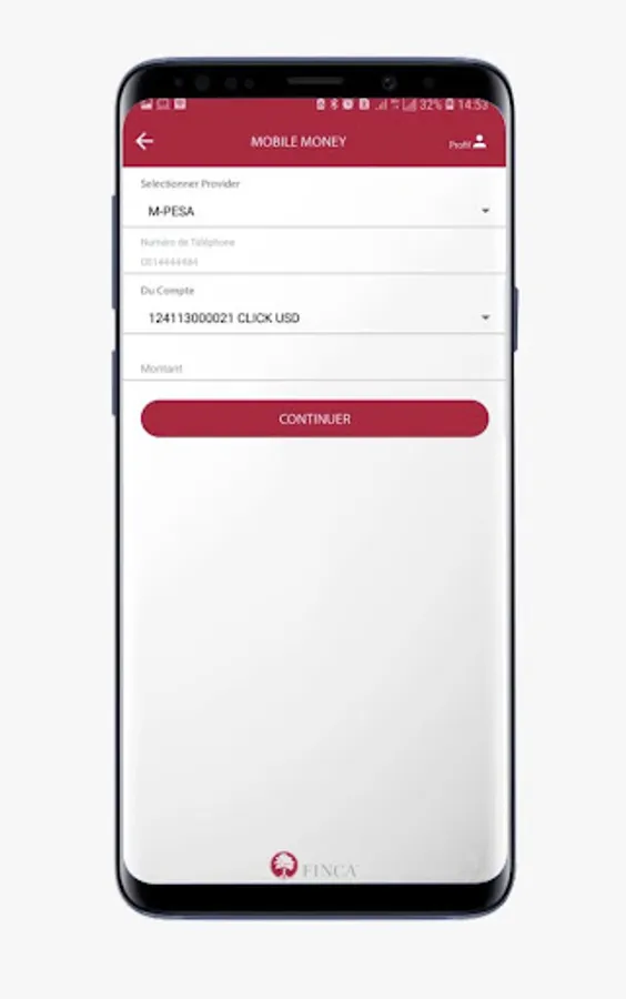 CLICK is a mobile application that provides access to the use of financial services offered by FINCA from a mobile phone regardless of the telecommunication network and the type of telephone in the Democratic Republic of Congo.