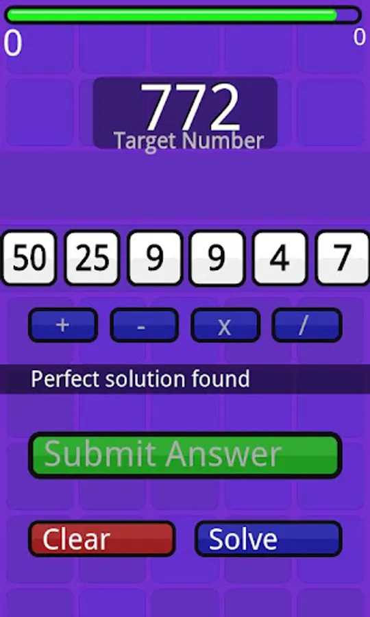 Add, subtract, multiple and divide the given numbers to get as close as possible to the goal number. Perform against the clock for high score.