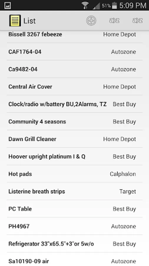 This is an app for organizing a shopping list which can be printed. Each item can be assigned a store name and a photo. Items can be hidden when not needed. Items can be sorted alphabetically by their names or by the name of the store. The app can create a backup of the list which can be loaded onto any phone.