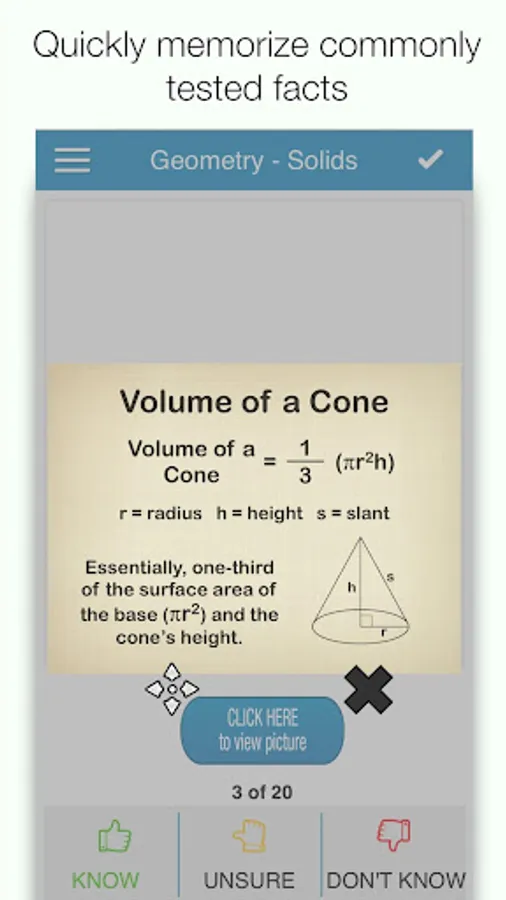 ⇨ Swipe between cards and touch to flip to the back and mark your knowledge.