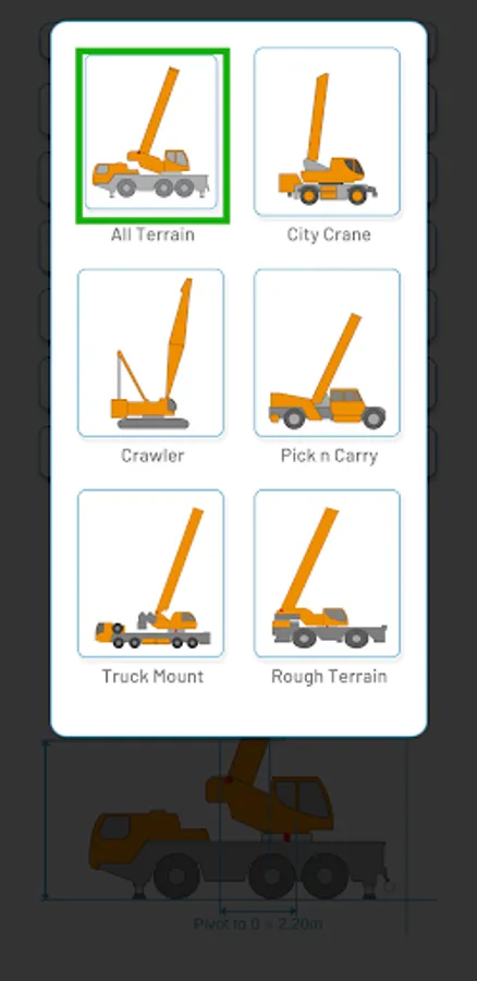 "Crangle is the ultimate range chart and planning tool designed specifically for crane operators, dogmen, and professionals working with cranes. Customise and configure your crane from a selection of six base types, allowing you to match almost any crane type in your fleet.