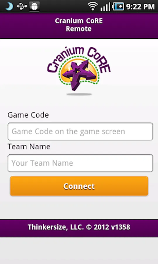 Simply enter in the Game Code that appears when you setup a new game to play. Click connect and your Cranium CoRE remote will automatically connect to the game and allow you to play.