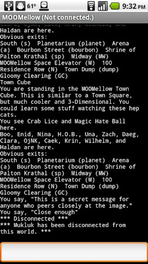 Mukluk is a client designed for use with your favorite MUD, MUSH, MUCK, MOO or similar online text-based world.