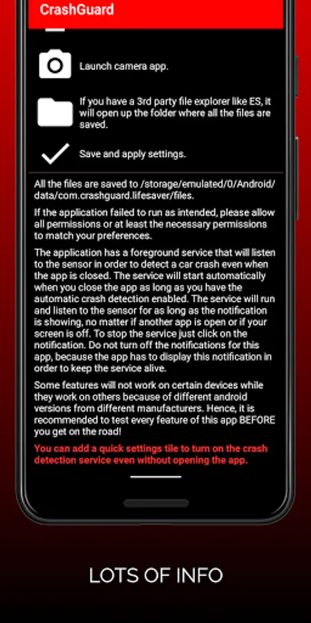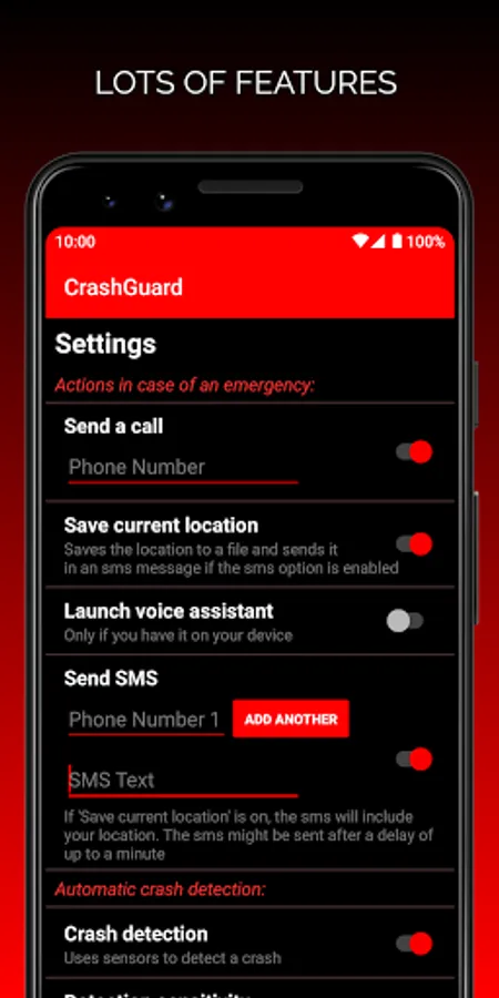 CrashGuard can detect a car crash and do a handful of operations automatically, like call your friends and family, send them an sms with your location, launch a voice assistant (if your device supports one) and more to come!