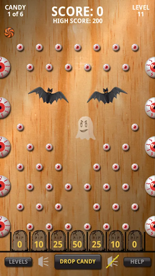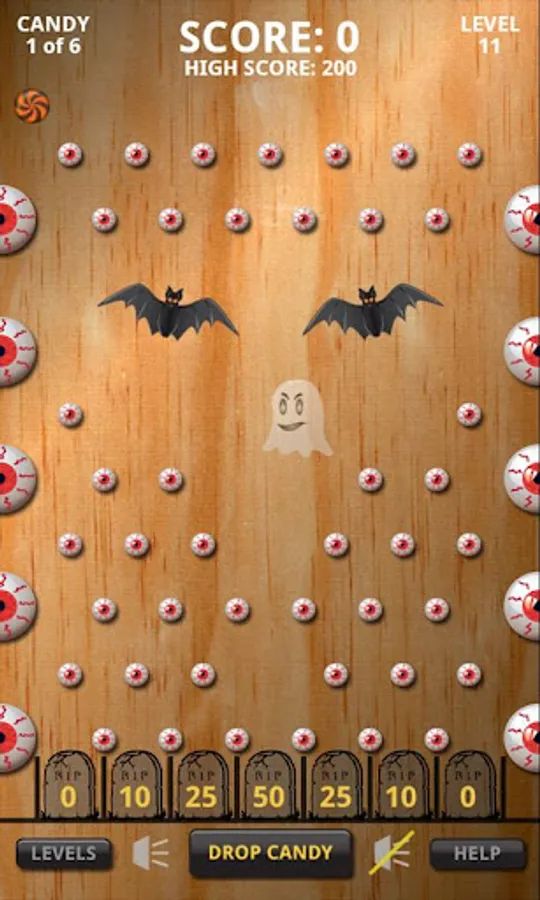 This is a fun, challenging, and addicting to play. Drag the candy at the top to where you want to release it and then click the “drop candy” button. The goal of the game is to get the highest score possible. You must get at least 150 points to unlock the next level. Some levels have objects that can effect the candy. It is easy to play but hard to master.