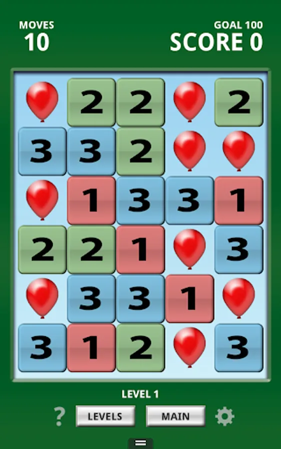 Number Match 3 is a match three puzzle game to help preschool kids learn numbers. When you touch a number it is spoken which helps kids learn what the numbers are. Touch a number and swipe up, down, left or right to move it. Match three of the same type to get points. If you touch a balloon it will pop so if you want to match three of them you will need to touch and swipe the adjacent item you want to swap it with. If you fail to reach the level goal you can add moves to keep going. Once you complete a level you can replay it for high score. Completing levels will give you coins to buy moves. You can replay levels to try and beat your old scores.
