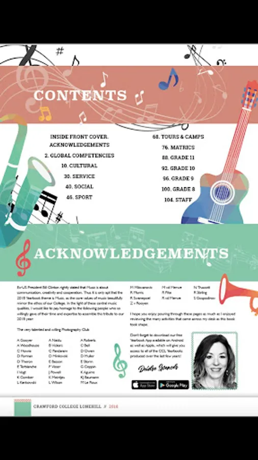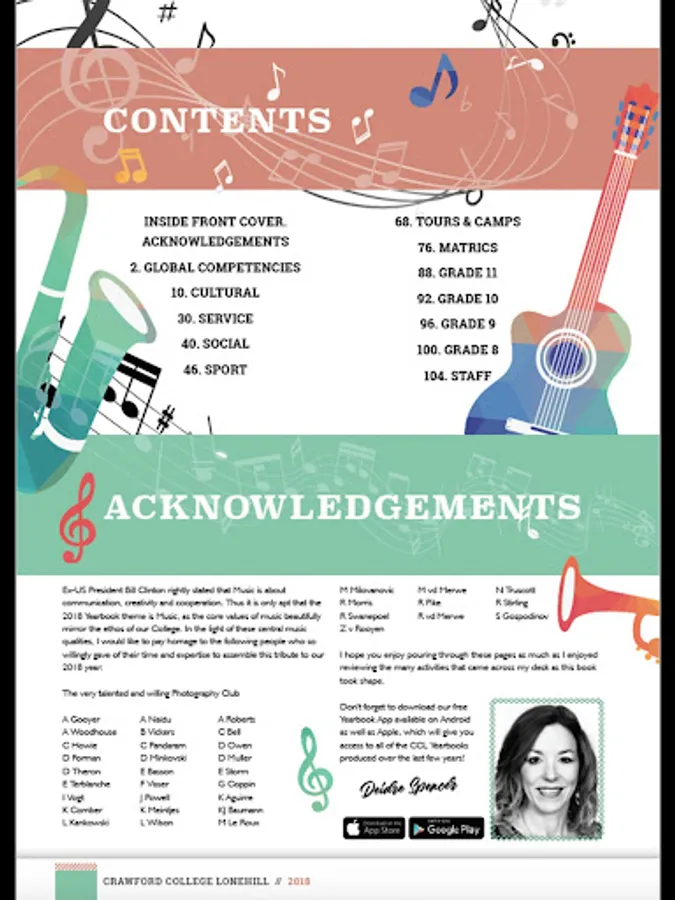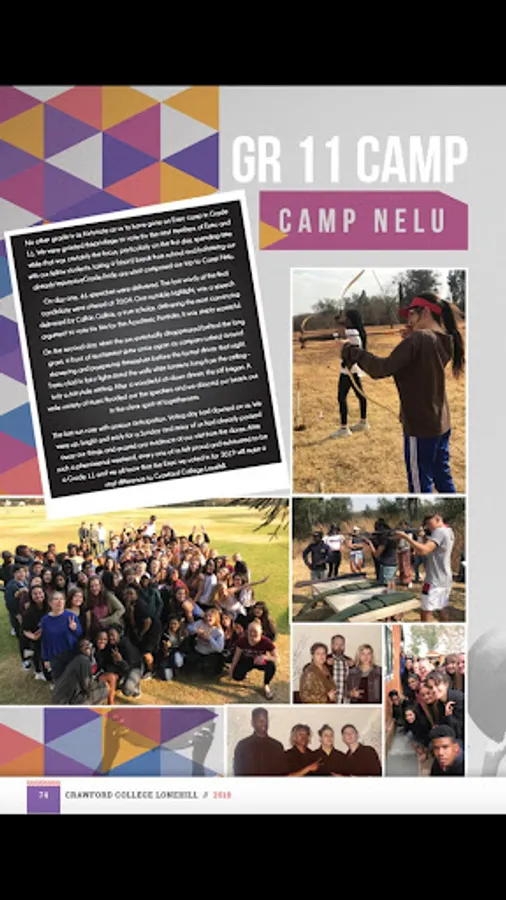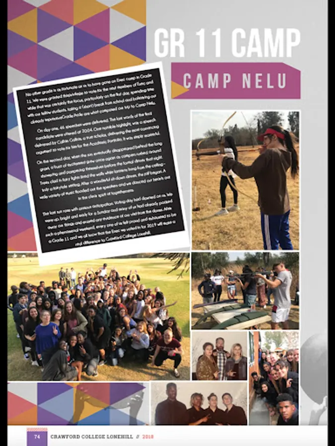 Crawford College Lonehill is situated in the heart of Lonehill. It is residence to almost 680 students and 70 highly qualified staff and is headed up by principal Shaun Fuchs. Academically, it caters to Grade 8 to Grade 12 level working within the National Senior Certificate Curriculum. It offers a wide variety of sporting and cultural extramural opportunities and has consistently produced some of the top results in the country in all three spheres. Many tours, camps and outings take place, intended to enrich students beyond the classroom and the school also has an active and vital Outreach programme. This yearbook app is a reflection of all the aspects that made up this incredible school.