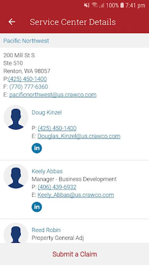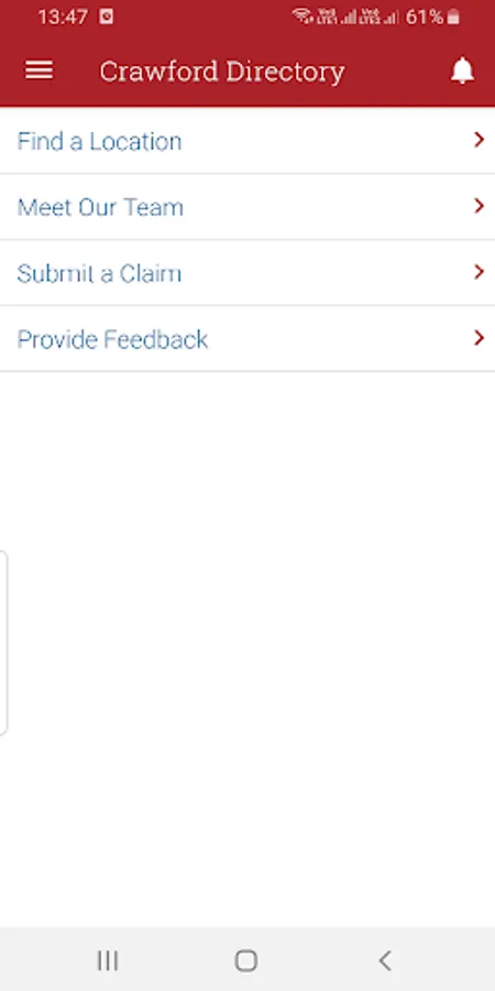 The Crawford Directory app is a one-stop information portal to provide details on Crawford services, locations, and people. Customers can easily determine the nearest Crawford location, view associated contact details, management, sales, product, and adjuster teams and even submit assignments directly to Crawford from the app.