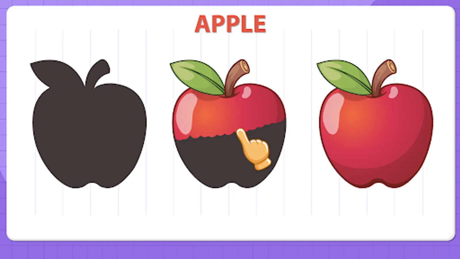 Erasing to Learn : Erase fruits, vegetables, shapes, colors, animals, professions, by using the finger.