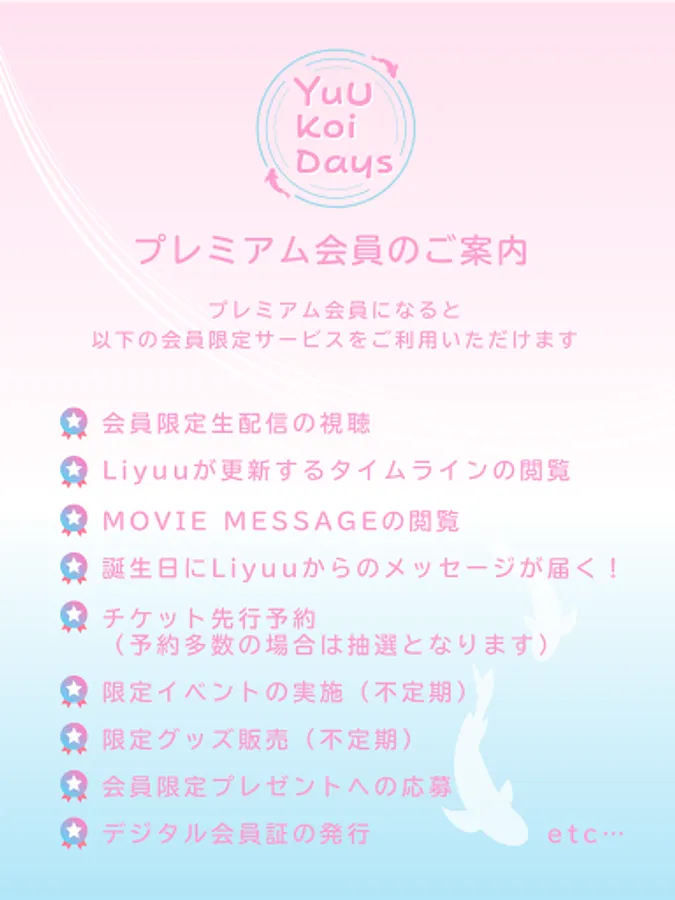 During the paid period, you can watch member-only live streaming, timeline, movie messages, and other member-only content, as well as various member-only content.