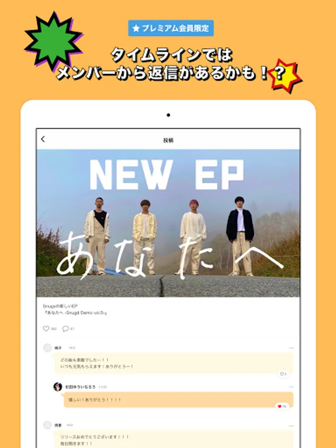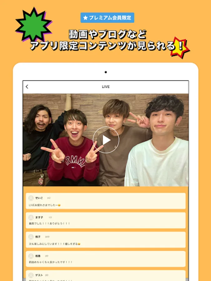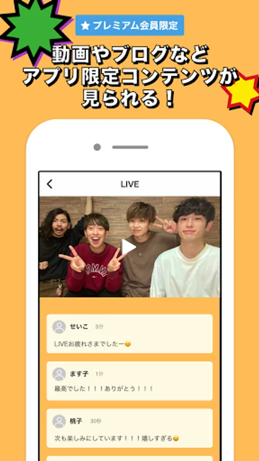 In addition to videos and blogs that can only be seen here, such as behind the scenes of live performances, there are plenty of limited content such as member-only distribution and ticket advancement!