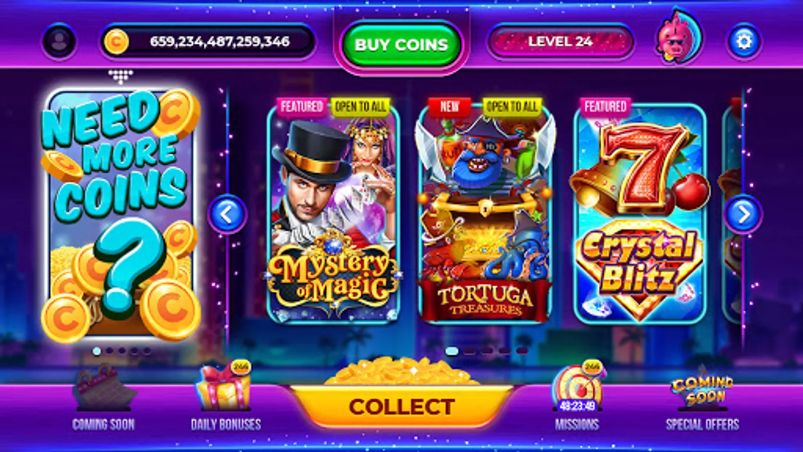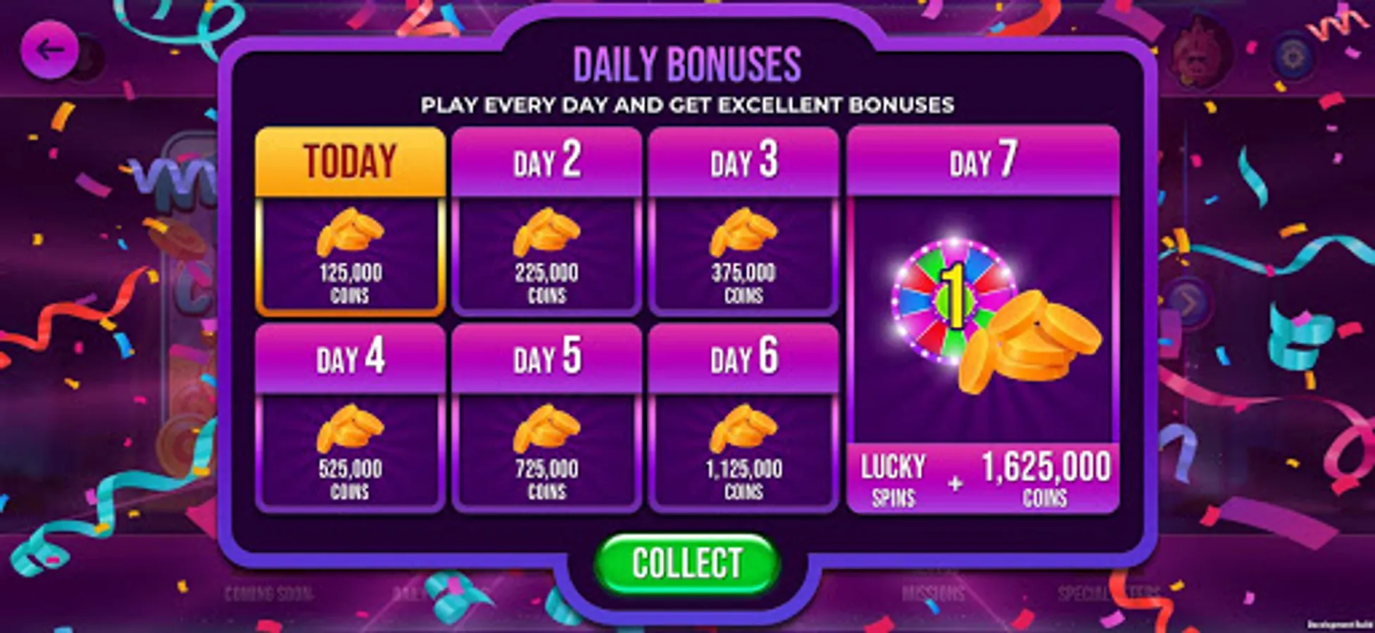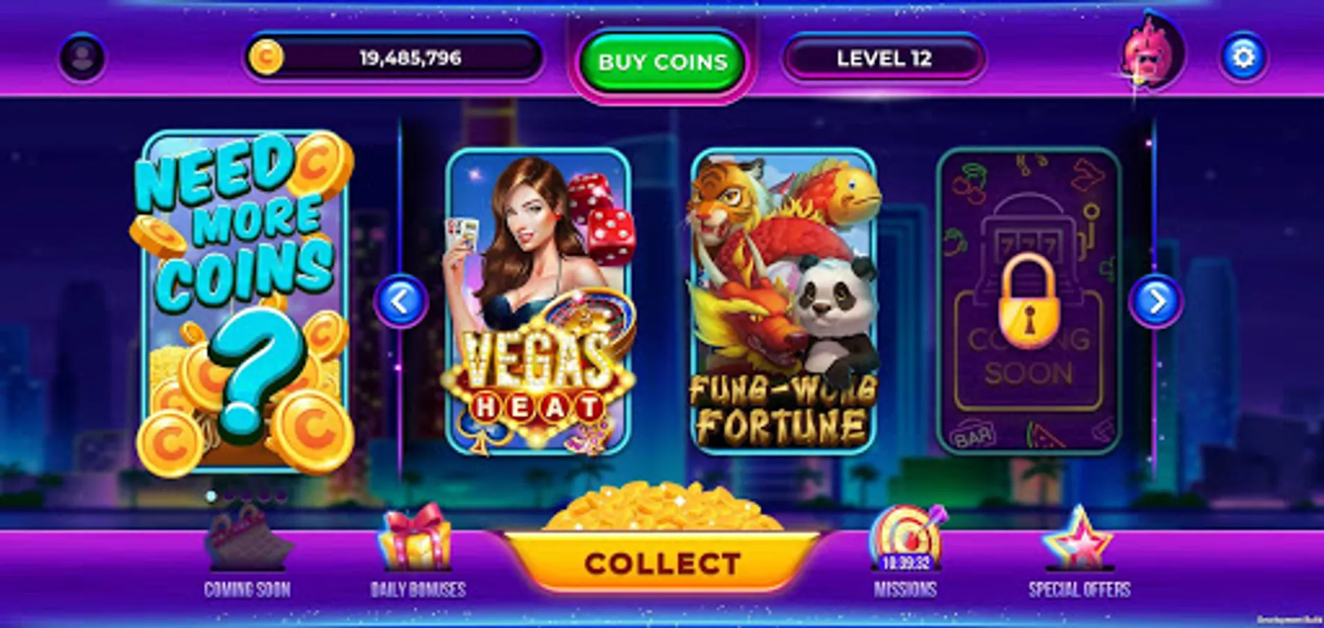 Play the best slots on your device and don’t you dare to miss those crazy Big, Huge, and Epic wins. Great news for thrill-seekers, Lucky Wheel is also available! Free BONUS coins waiting for you.