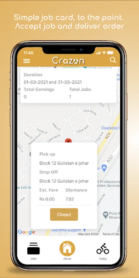 The Crazon Delivery Platform App lets you manage your delivery jobs. You can start delivery services for any kind of business on Crazon Platform.