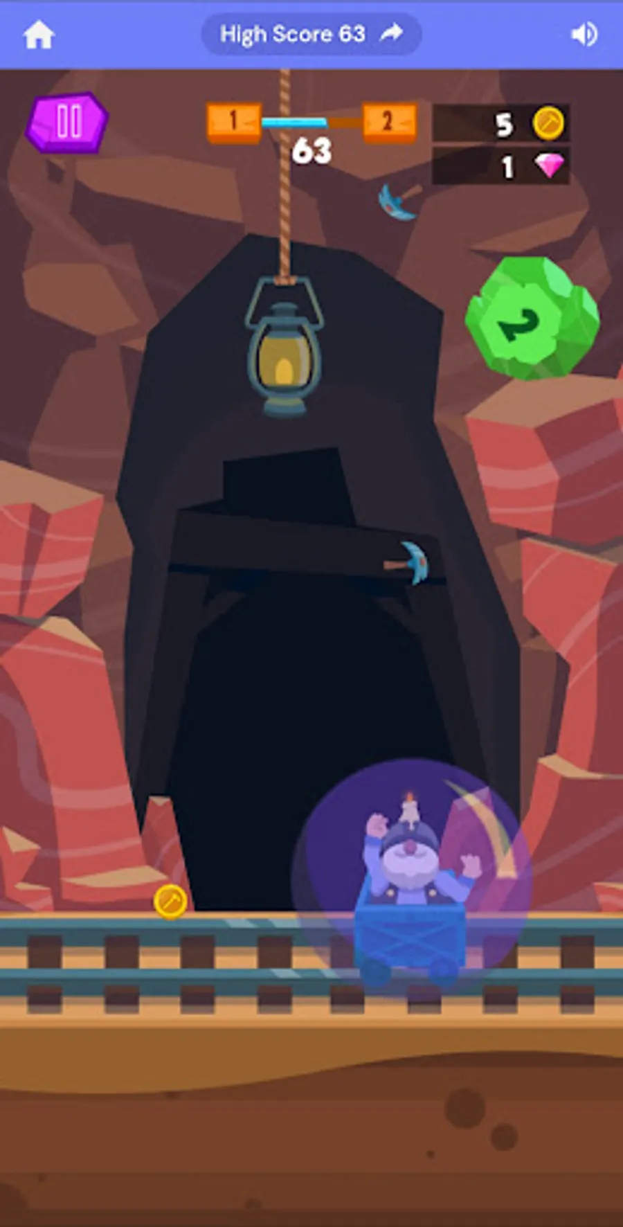 Crazy Caves a game that makes you search for minerals such as gold, silver and diamonds in the depths of the crazy cave. Destroy the rocks that come in front of you in the dark cuff and collect the gems in his cart and develop it and Fez and collect the largest points