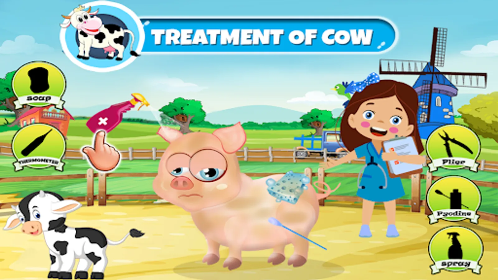 Welcome to our new educational toddlers games for girls “Kids Farm Animals Doctor Game” for preschool kids under 8. Learn about different farm animals and how they are raised on farms. What these animals eat, how they pass their time, how they play with their master, what is harmful for them, how to wash feed pets, how to take proper care of them and how to treat them as a pet vet doctor when they are ill in this cow farming games.