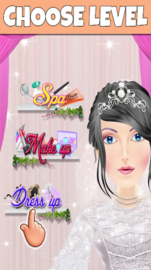 Now it’s time for the most important part, the dressing. Choose the most beautiful dress among the pretty outfits because dress is the main thing for a bride in the wedding. There are so many dresses for the bride, choose your dream wedding dress and make your dream come true in this fashion dress up games. Then do the jewellery makeover. There are many options for jewellery like necklace, bracelets, rings etc. Select your favorite shoes and bags in this 2 to 8 years old makeover games for kid girls. Now, the bride is fully ready for her big day and is looking really beautiful, thanks to your amazing makeup and fashion skills in this makeup games for girls.