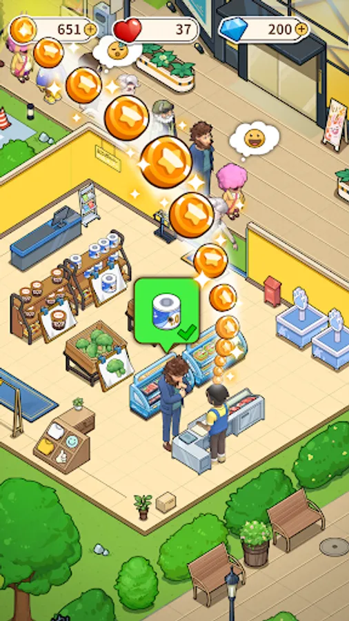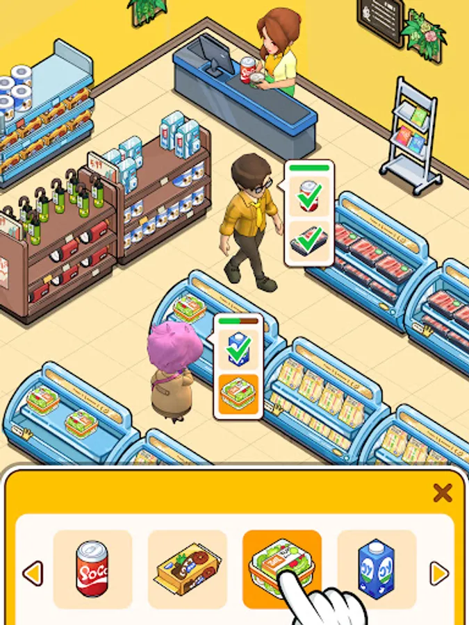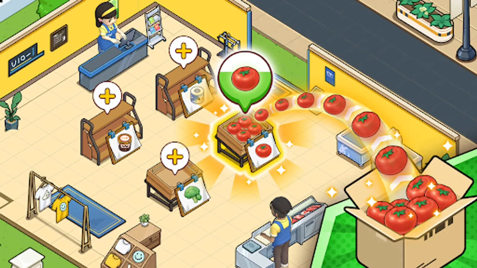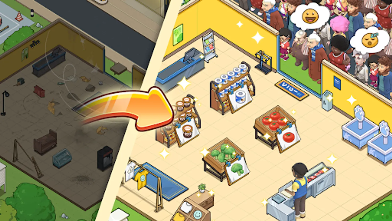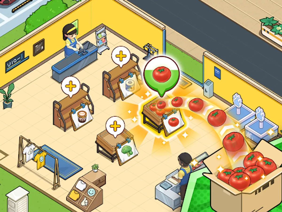The fast-paced market simulation you will experience, starting from a small one with no people, upgrading your facilities, expanding your place, growing your business, and establishing your own hypermarket!