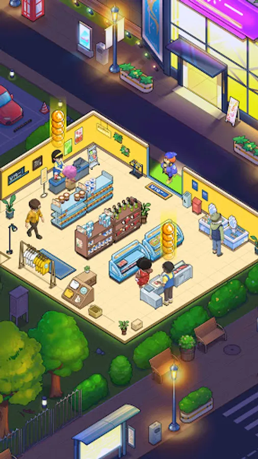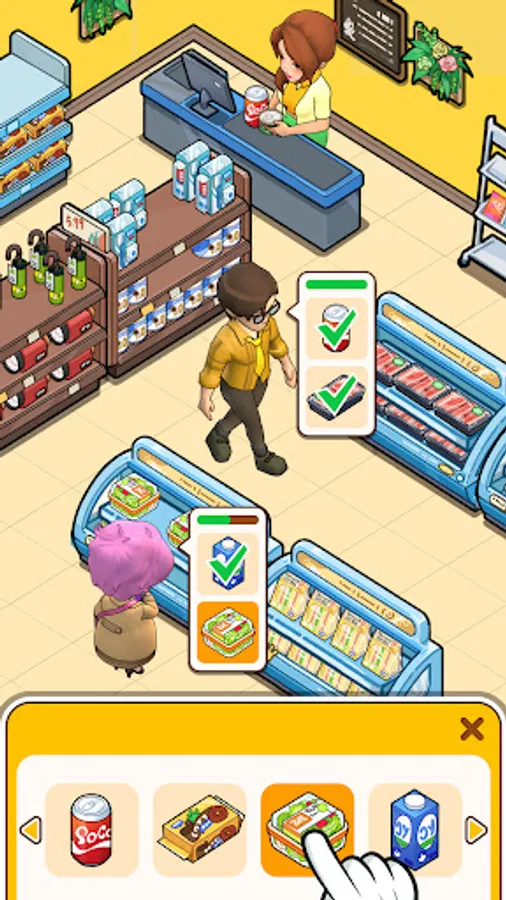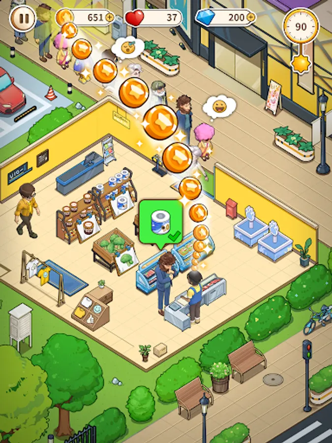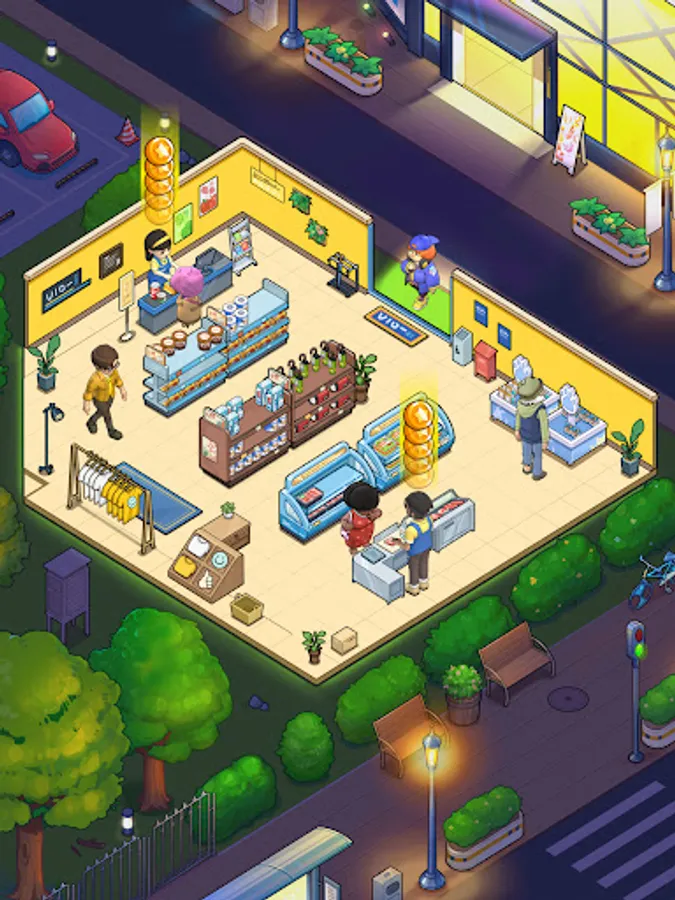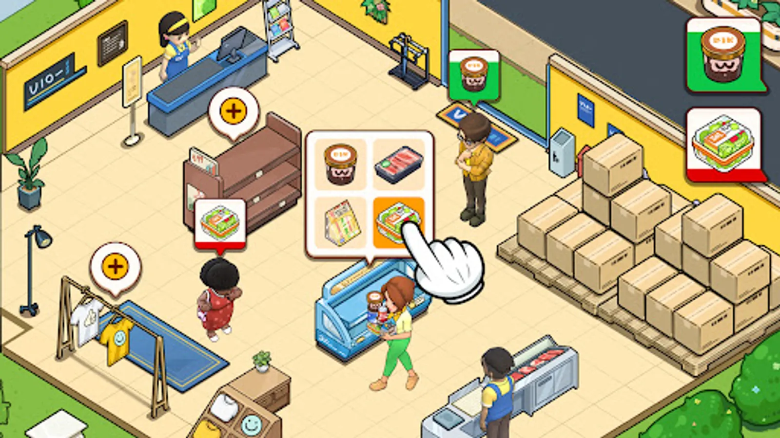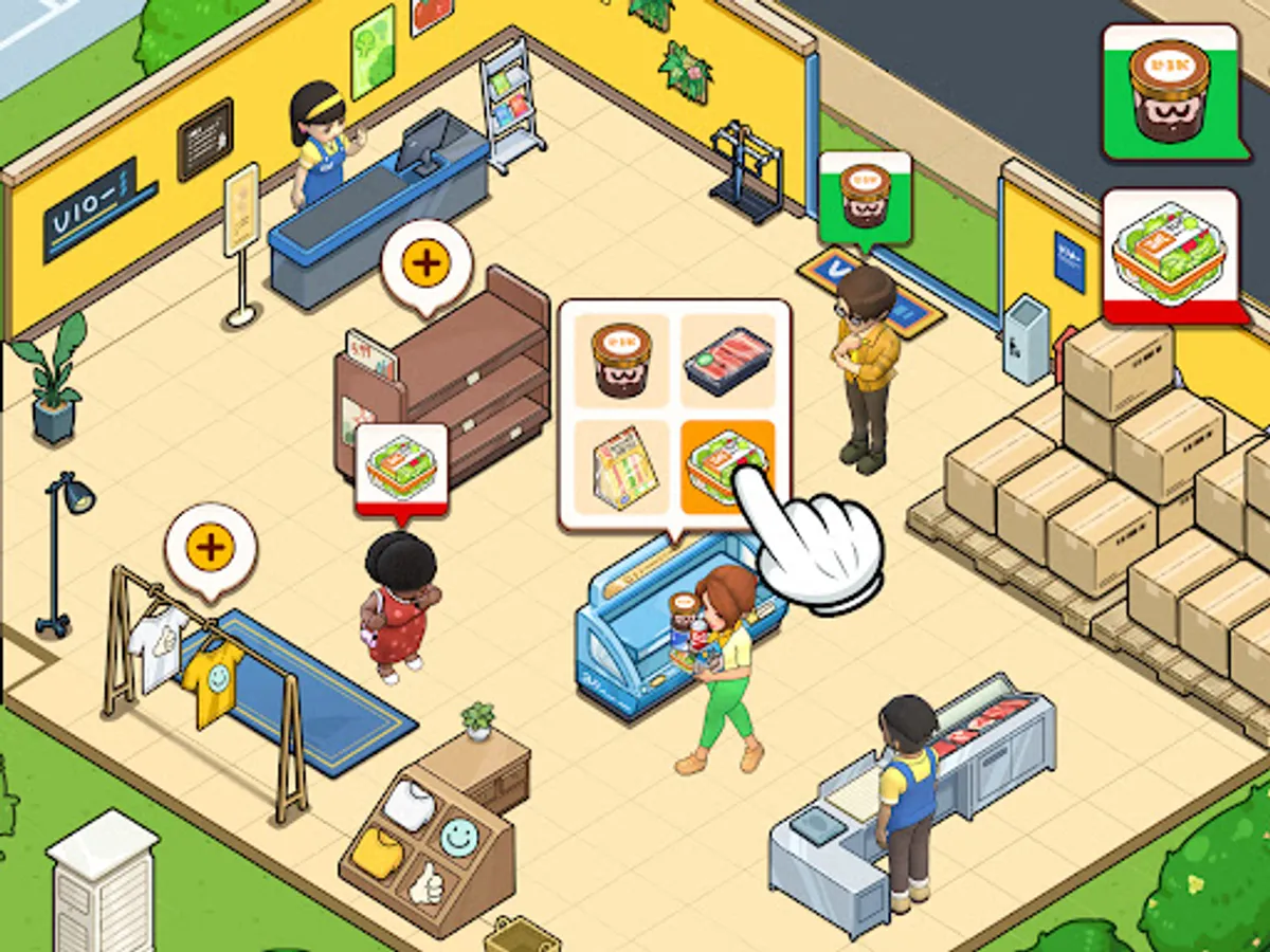 The fast-paced market simulation you will experience, starting from a small one with no people, upgrading your facilities, expanding your place, growing your business, and establishing your own hypermarket!