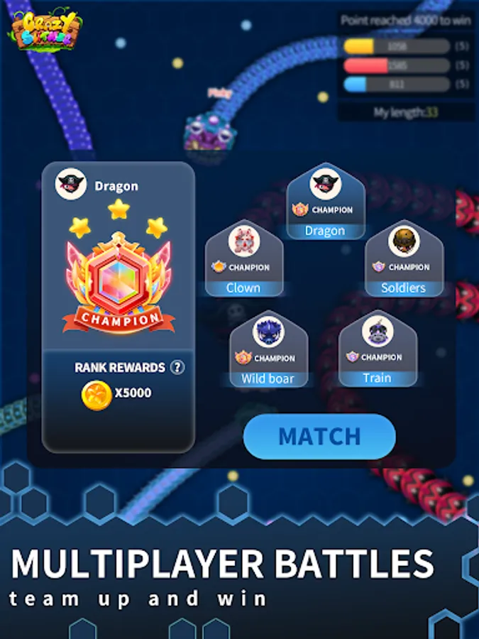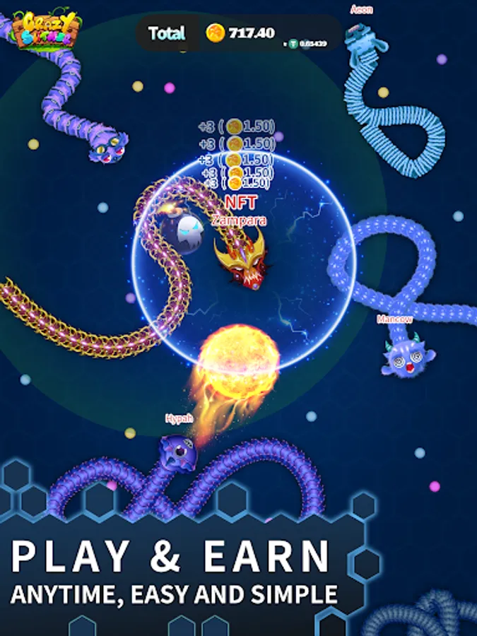 Crazy Slither is an IO-style casual game that's been redeveloped from the classic Snake game. Players control a unique snake and continuously consume resources on the map to become stronger. Crazy Slither brings innovation based on the classic Snake game and introduces modern Web3.0 concepts. Each player's snake becomes an NFT, giving each character its own personality and value. In addition to traditional gameplay modes, there are new endless modes and enhanced social team-play mechanics. No matter when or where, you'll be able to experience the new Web3.0 experience in the game. The new gameplay mechanics add to the fun experience of the classic Snake game. Play on global servers and enjoy the fun in Crazy Slither. NFT snake skins can also be traded on the global market, increasing the value of your game. Crazy Slither is a Web3 game, a P2E game with NFTs. Enjoy your time with friends, create clans, battle each other, and become stronger on the platform. Crazy Slither is part of the Crazy Land ecosystem.