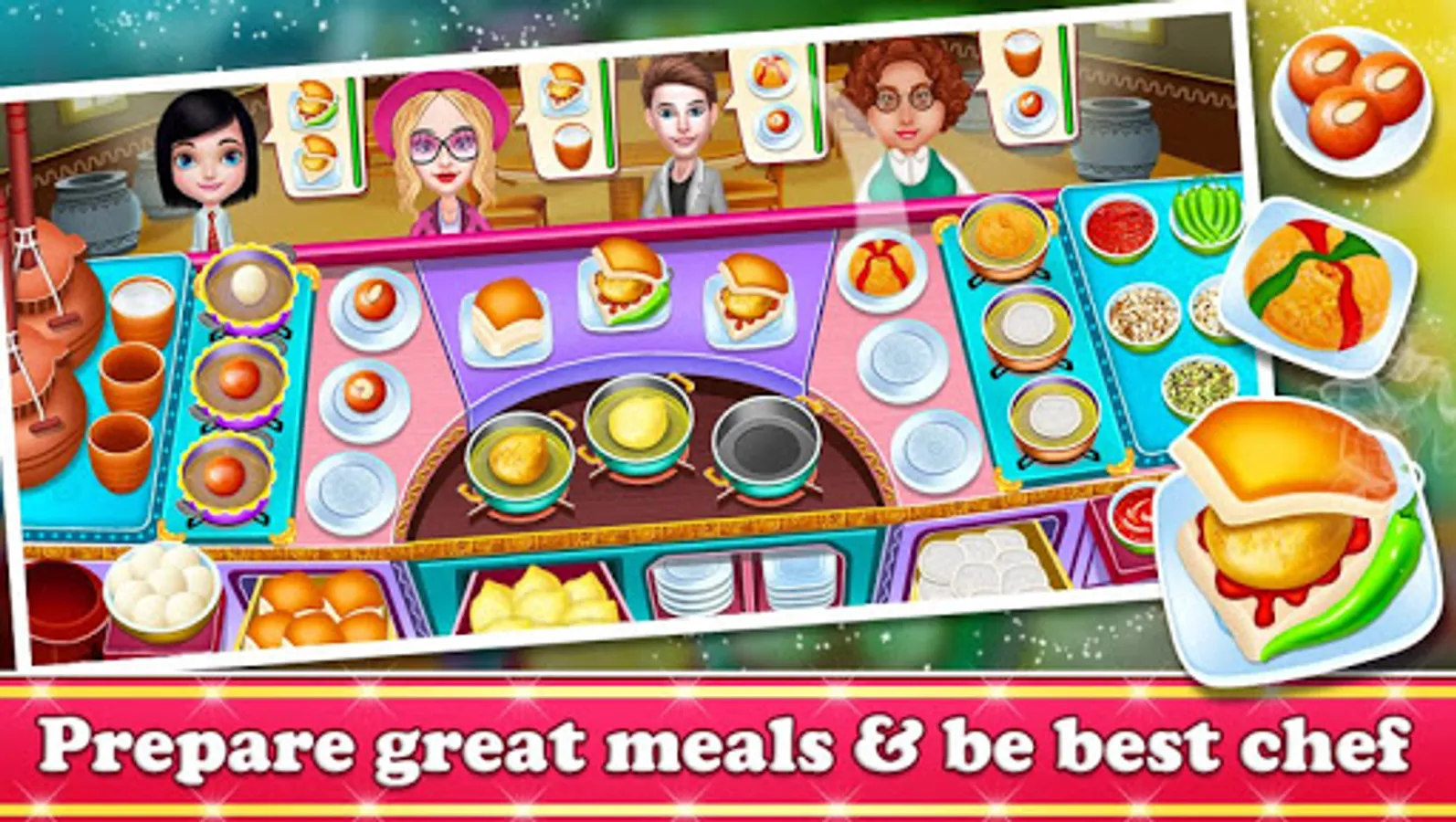 Cook thousands of tasty dishes for your clients/customers and keep upgrading your kitchen. Try all possible kitchen appliances from Tea machine to Chhas maker and from coffee maker through Flavoured lassi machine. Also upgrade Khaman oven, Aloo paratha pan, Aloo paratha pad, Fafda pad and pan and Jalebi fry pan as well. Upgrade and unlock appliances to cook more amount of Indian fast food dishes. Become crazy cooking chef in this highly addictive kitchen cooking game for girls. Play as a chef in fun restaurant baking games and add cooking experience in your cooking diary. You may have played lots of chefβs kitchen simulation games but this exciting best cooking craze offers tap, cook and serve mechanisms with great number of recipes.