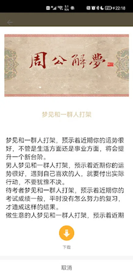 Day thinking, night dreaming. We encounter all kinds of strange dreams every day, and we are shocked and confused. At this time, you must want to find out what these dreams mean? What does it imply? This Zhou Gong dream interpretation software gives you an interesting reference to analyze dreams from multiple angles.
