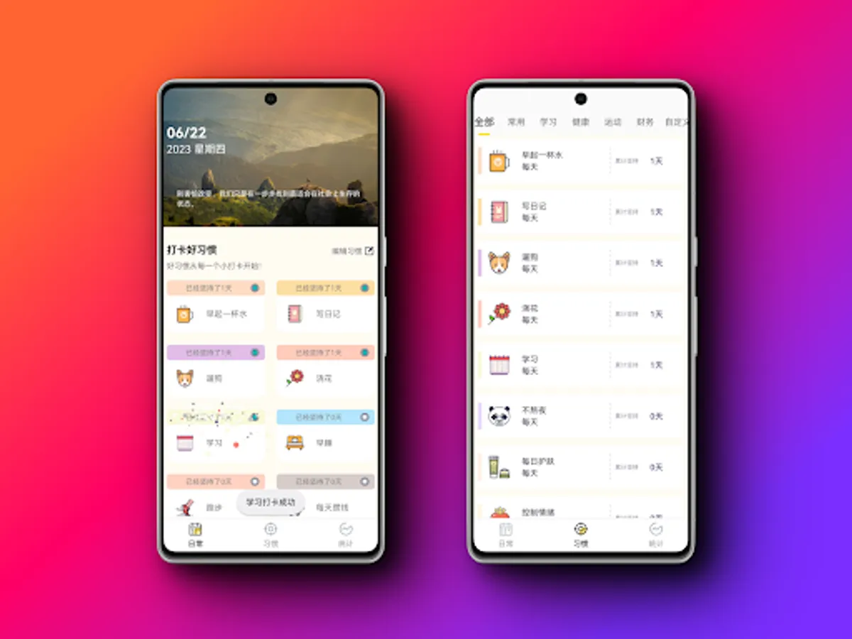 Little Habits aims to help you establish habit goals and develop self-discipline habits, so as to achieve a better life. Little Habits is a simple application for tracking habits and managing your own time, refusing to procrastinate, and insisting on clocking in. Small Habits is dedicated to cultivating users to develop good habits, get rid of procrastination in life, and stick to a little bit every day to make themselves more self-disciplined. Make a daily plan and develop good habits in a planned way. Sign in and check in every day, from persistence to habit, improve self-discipline in life, improve work efficiency, and improve the quality of life.