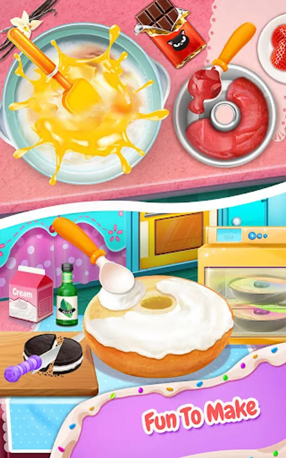 Sweet, warm donut cake make a wonderful snack any time of the day. Do you like yours glazed? With sprinkles? With a sweet pastry filling? Maybe you like them all! In this fun donut cake cooking game, you'll make your own donut cake from scratch, Select your favorite flavor, Decorate in your own style, Eat & Share with friends and daddy, mommy!